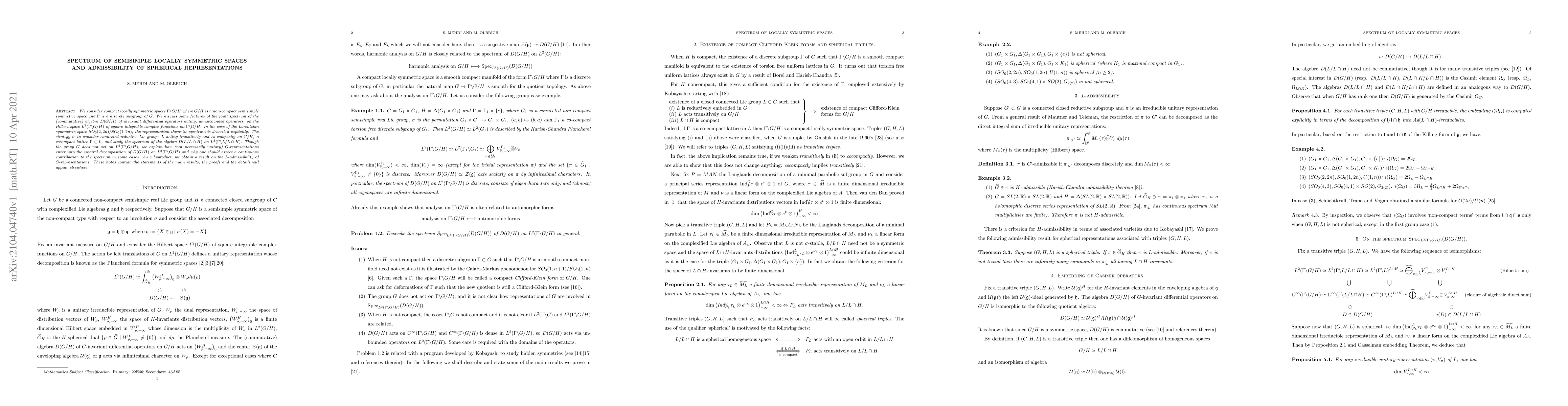 This research paper explores the spectrum of semisimple locally symmetric spaces and its relation to admissible spherical representations, shedding light on key features and implications for representation theory.