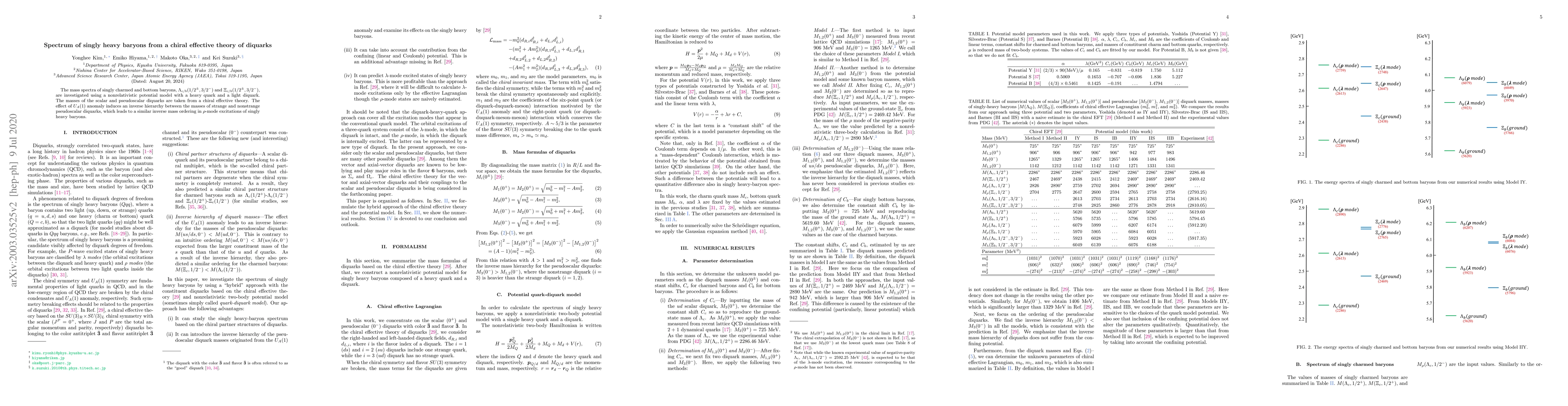 The mass spectra of singly charmed and bottom baryons, $\Lambda_{c/b}(1/2^\pm,3/2^-)$ and $\Xi_{c/b}(1/2^\pm,3/2^-)$, are investigated using a nonrelativistic potential model with a heavy quark and a light diquark. The masses of the scalar and pseudoscalar diquarks are taken from a chiral effective theory. The effect of $U_A(1)$ anomaly induces an inverse hierarchy between the masses of strange and non-strange pseudoscalar diquarks, which leads to a similar inverse mass ordering in $\rho$-mode excitations of singly heavy baryons.