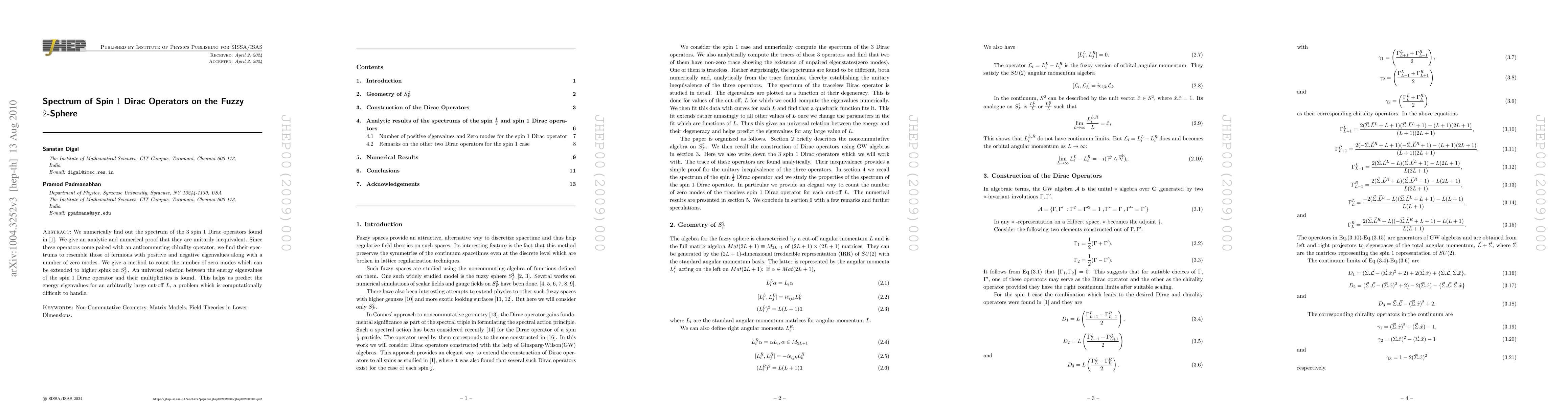 This paper numerically investigates the spectrum of three spin 1 Dirac operators on the fuzzy 2-sphere, proving their unitarily inequivalence. It reveals a universal relation between energy eigenvalues and multiplicities, facilitating predictions for large cut-offs.