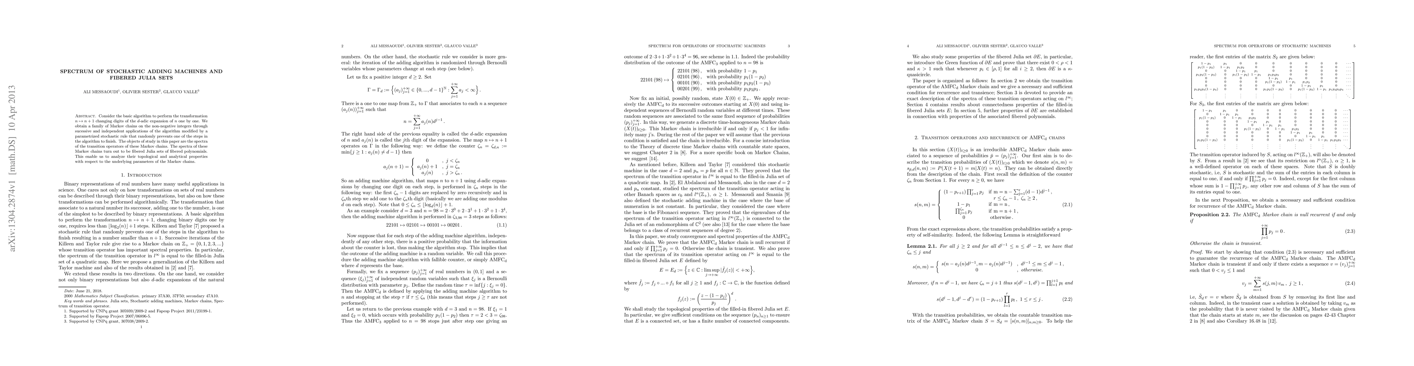 Consider the basic algorithm to perform the transformation n--> n+1 changing digits of the d-adic expansion of n one by one. We obtain a family of Markov chains on the non-negative integers through sucessive and independent applications of the algorithm modified by a parametrized stochastic rule that randomly prevents one of the steps in the algorithm to finish. The objects of study in this paper are the spectra of the transition operators of these Markov chains. The spectra of these Markov chains turn out to be fibered Julia sets of fibered polynomials. This enable us to analyze their topological and analytical properties with respect to the underlying parameters of the Markov chains.