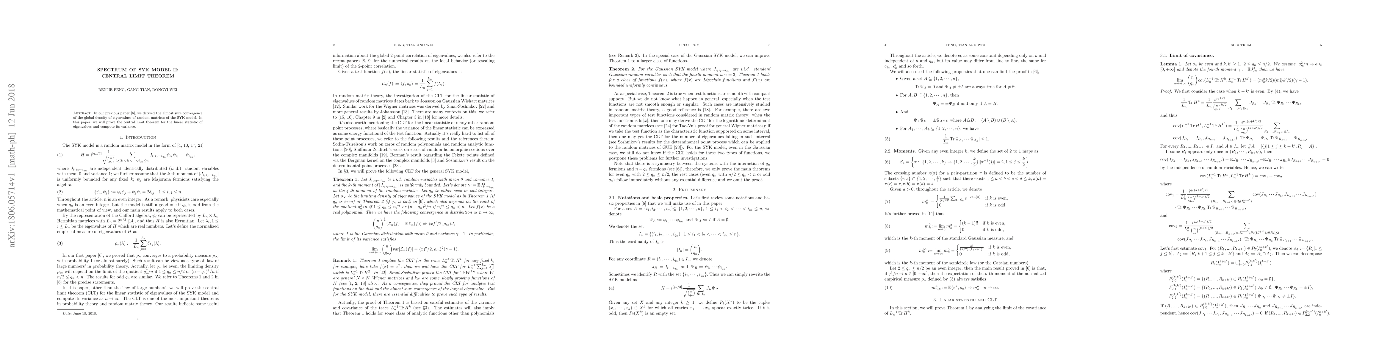 This paper builds on previous work to demonstrate the central limit theorem for the SYK model's linear statistics of eigenvalues, confirming their distribution and calculating its variance. This extends the understanding of the model's eigenvalue density convergence.