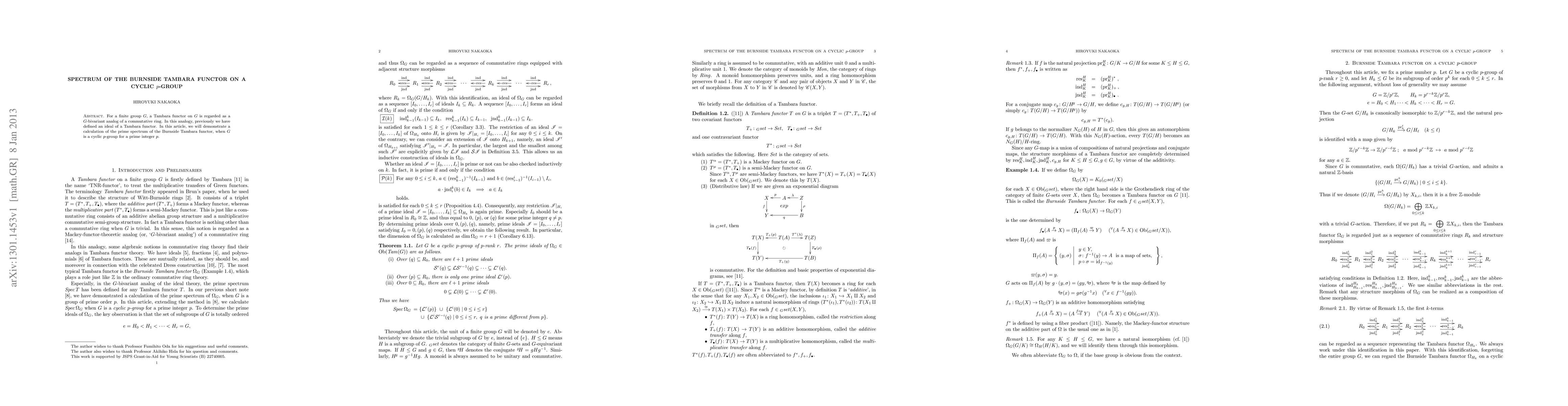 This paper calculates the prime spectrum of the Burnside Tambara functor for a cyclic $p$-group, extending the concept of ideals in Tambara functors to explore their structural properties. The results provide insight into the $G$-bivariant analog of commutative rings in modular representation theory.