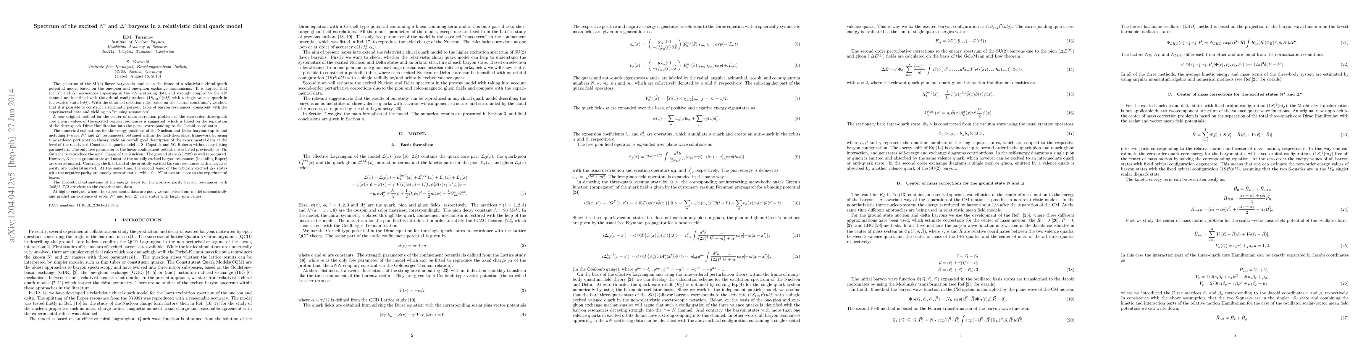 This paper investigates the spectrum of excited N* and Δ* baryons using a relativistic chiral quark model, identifying resonances through orbital configurations and chiral constraints. The model predicts a periodic table of baryon resonances, accurately reproducing some experimental data while overestimating others, and suggests the existence of additional higher-spin states where data is sparse.