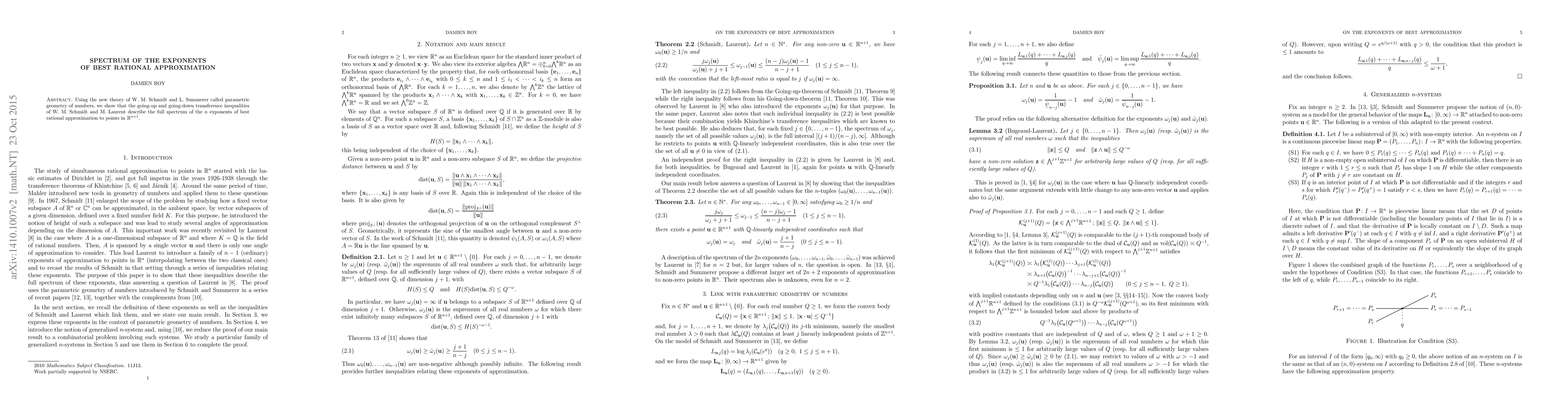Using the new theory of W. M. Schmidt and L. Summerer called parametric geometry of numbers, we show that the going-up and going-down transference inequalities of W. M. Schmidt and M. Laurent describe the full spectrum of the $n$ exponents of best rational approximation to points in $\mathbb{R}^{n+1}$.