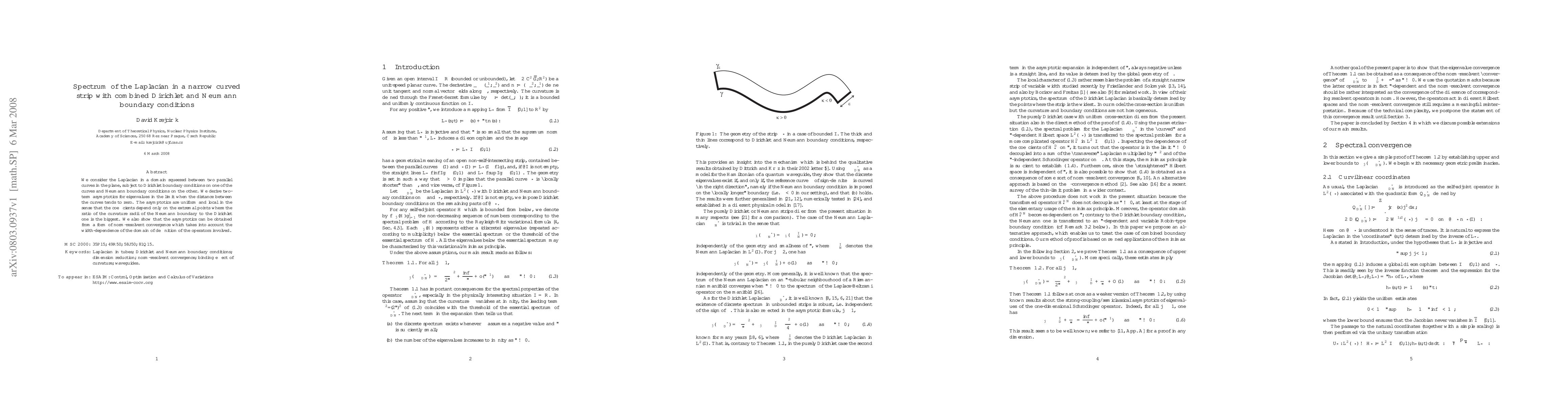 We consider the Laplacian in a domain squeezed between two parallel curves in the plane, subject to Dirichlet boundary conditions on one of the curves and Neumann boundary conditions on the other. We derive two-term asymptotics for eigenvalues in the limit when the distance between the curves tends to zero. The asymptotics are uniform and local in the sense that the coefficients depend only on the extremal points where the ratio of the curvature radii of the Neumann boundary to the Dirichlet one is the biggest. We also show that the asymptotics can be obtained from a form of norm-resolvent convergence which takes into account the width-dependence of the domain of definition of the operators involved.