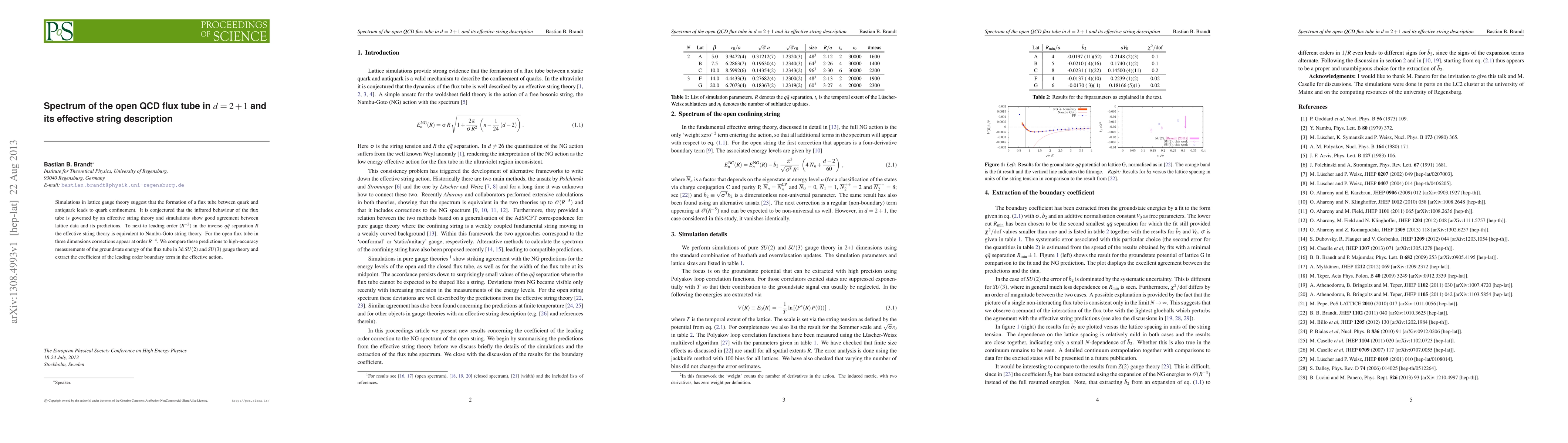 Simulations in lattice gauge theory suggest that the formation of a flux tube between quark and antiquark leads to quark confinement. It is conjectured that the infrared behaviour of the flux tube is governed by an effective string theory and simulations show good agreement between lattice data and its predictions. To next-to leading order ($R^{-3}$) in the inverse $q\bar{q}$ separation $R$ the effective string theory is equivalent to Nambu-Goto string theory. For the open flux tube in three dimensions corrections appear at order $R^{-4}$. We compare these predictions to high-accuracy measurements of the groundstate energy of the flux tube in 3d SU(2) and SU(3) gauge theory and extract the coefficient of the leading order boundary term in the effective action.