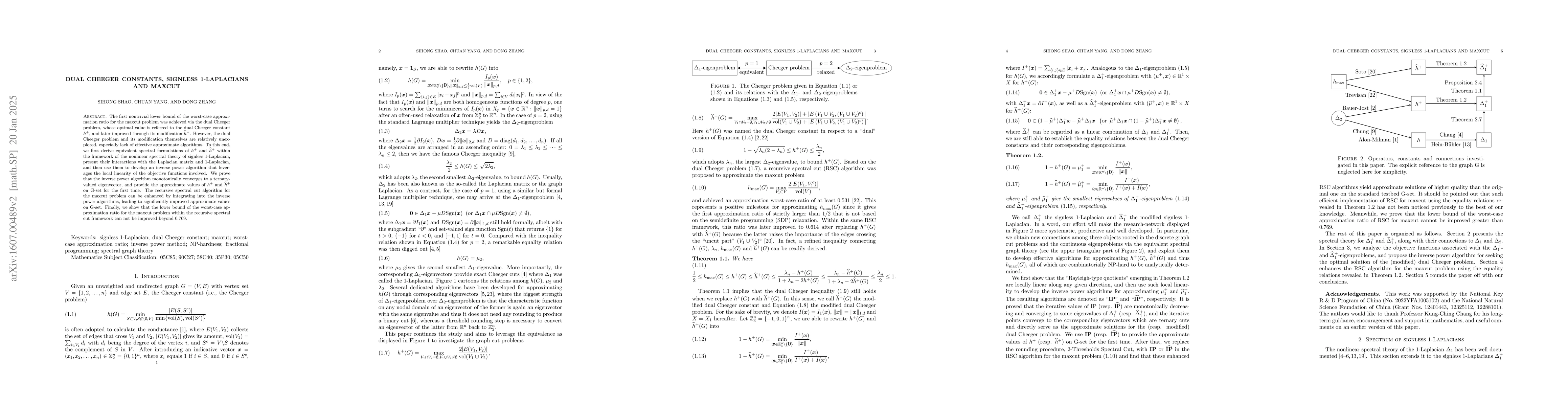 This paper develops the spectral theory of the signless 1-Laplacian on graphs, showing that its first eigenvalue $\mu^+_1$ characterizes bipartiteness and connects to the maxcut problem. It proves the dual Cheeger constant $h^+$ equals $1-\mu^+_1$, extending the Courant nodal domain theorem and presenting an inverse power method for an efficient maxcut algorithm.
