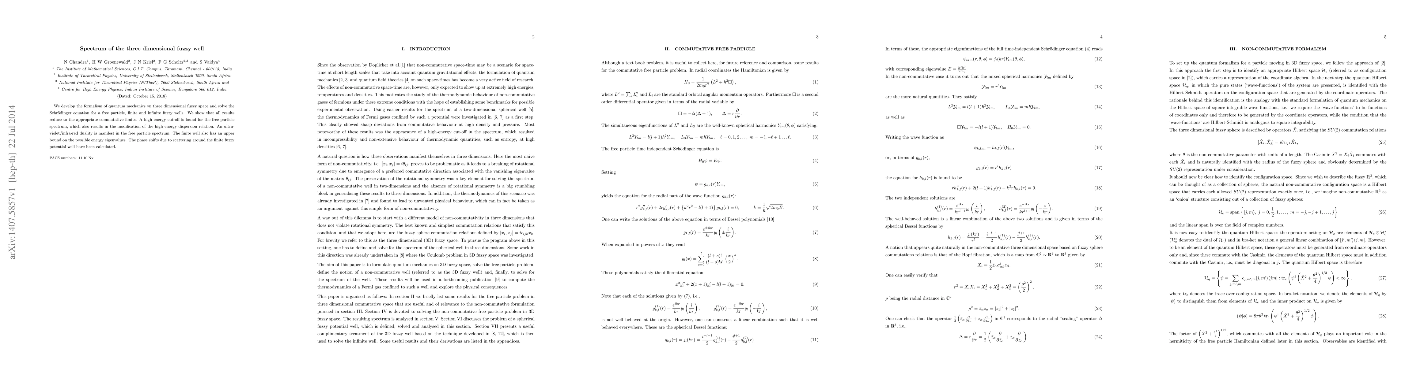 Researchers developed a quantum mechanics framework for 3D fuzzy space, finding high energy cutoffs, modified dispersion relations, and upper bounds on energy eigenvalues in free particle and finite well scenarios.