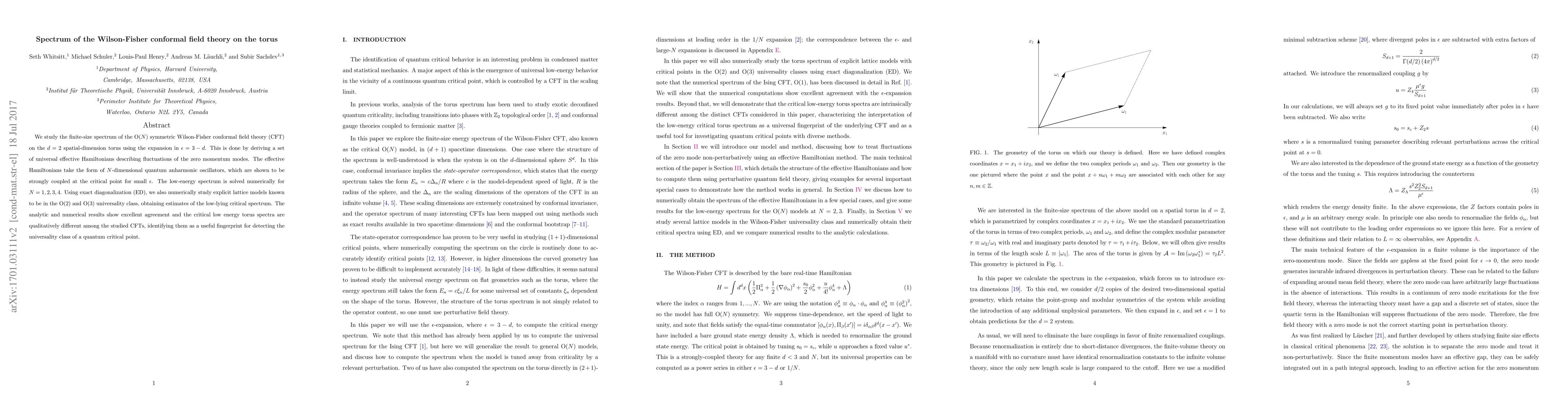 We study the finite-size spectrum of the O($N$) symmetric Wilson-Fisher conformal field theory (CFT) on the $d=2$ spatial-dimension torus using the expansion in $\epsilon=3-d$. This is done by deriving a set of universal effective Hamiltonians describing fluctuations of the zero momentum modes. The effective Hamiltonians take the form of $N$-dimensional quantum anharmonic oscillators, which are shown to be strongly coupled at the critical point for small $\epsilon$. The low-energy spectrum is solved numerically for $N = 1,2,3,4$. Using exact diagonalization (ED), we also numerically study explicit lattice models known to be in the O($2$) and O($3$) universality class, obtaining estimates of the low-lying critical spectrum. The analytic and numerical results show excellent agreement and the critical low energy torus spectra are qualitatively different among the studied CFTs, identifying them as a useful fingerprint for detecting the universality class of a quantum critical point.