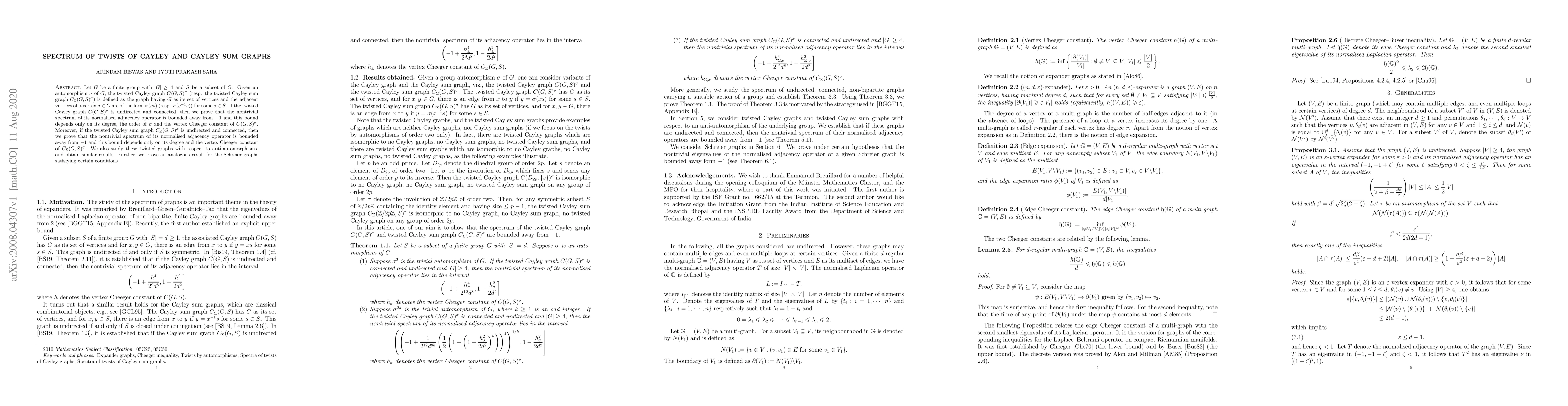 This paper investigates the spectrum of twisted Cayley and Cayley sum graphs defined by automorphisms and anti-automorphisms of a finite group, proving bounds on the nontrivial spectrum that depend on graph degree and vertex Cheeger constants. Similar results are obtained for twisted graphs and Schreier graphs under certain conditions.