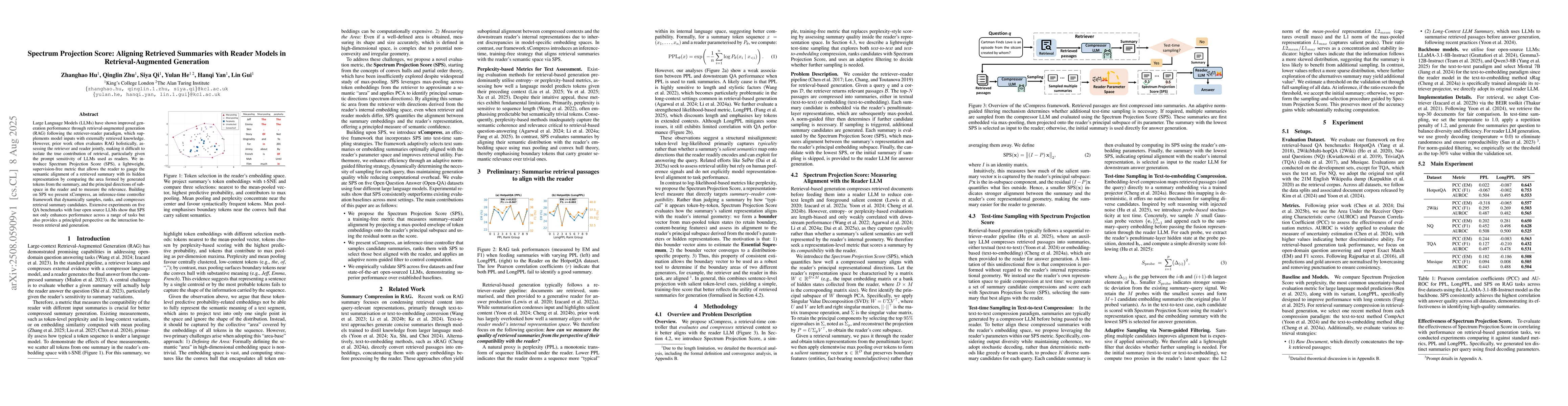 The research introduces Spectrum Projection Score (SPS), a supervision-free metric for evaluating semantic alignment between retrieved summaries and a reader model's internal geometry in retrieval-augmented generation. It also presents xCompress, an inference-time controller framework for dynamic sampling, ranking, and compression of retrieval summary candidates.