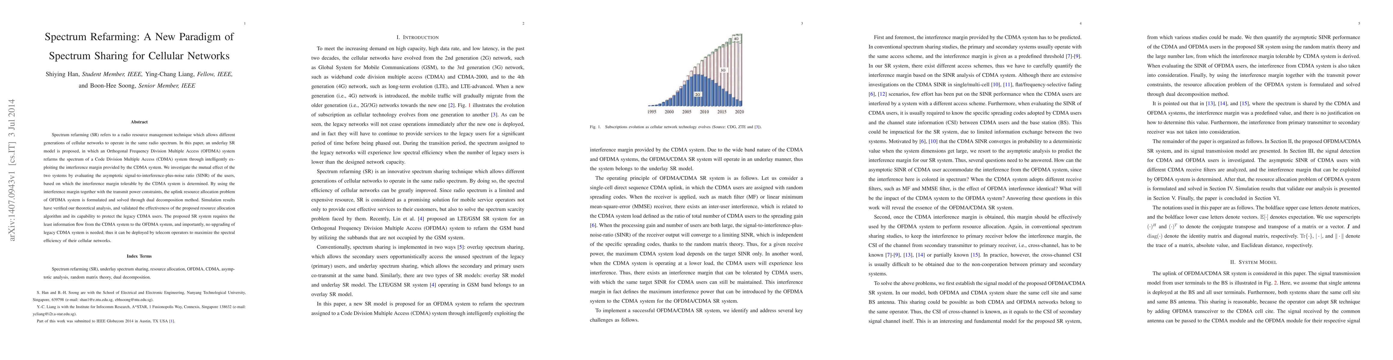 This paper proposes a spectrum refarming model where an OFDMA system shares the spectrum of a legacy CDMA system by intelligently managing interference. The study formulates and solves an uplink resource allocation problem using dual decomposition, demonstrating effective protection for CDMA users with minimal system upgrades.