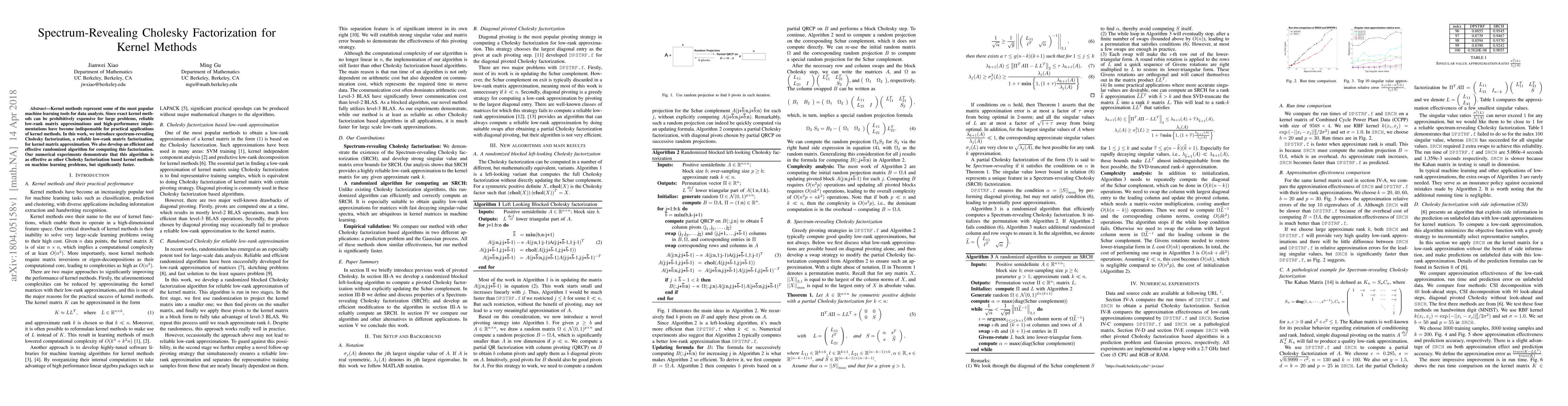 This research introduces 'Spectrum-Revealing Cholesky Factorization' for approximating large kernel matrices efficiently, providing a faster yet effective method for kernel-based machine learning tasks compared to existing Cholesky factorization techniques.