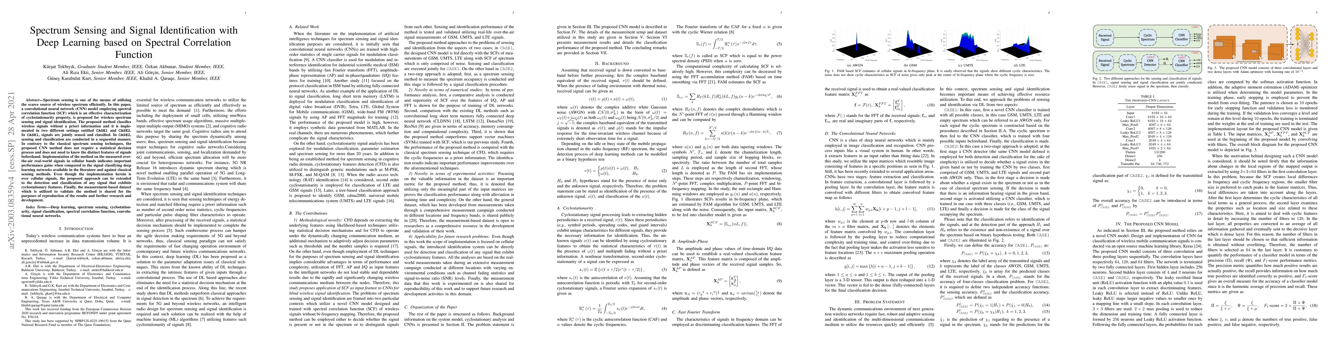 This paper proposes a convolutional neural network (CNN) model using spectral correlation function for wireless spectrum sensing and signal identification, achieving performance gains over classical methods without requiring a priori signal information. The method is validated on real-world cellular signals and can be extended to other cyclostationary signals.