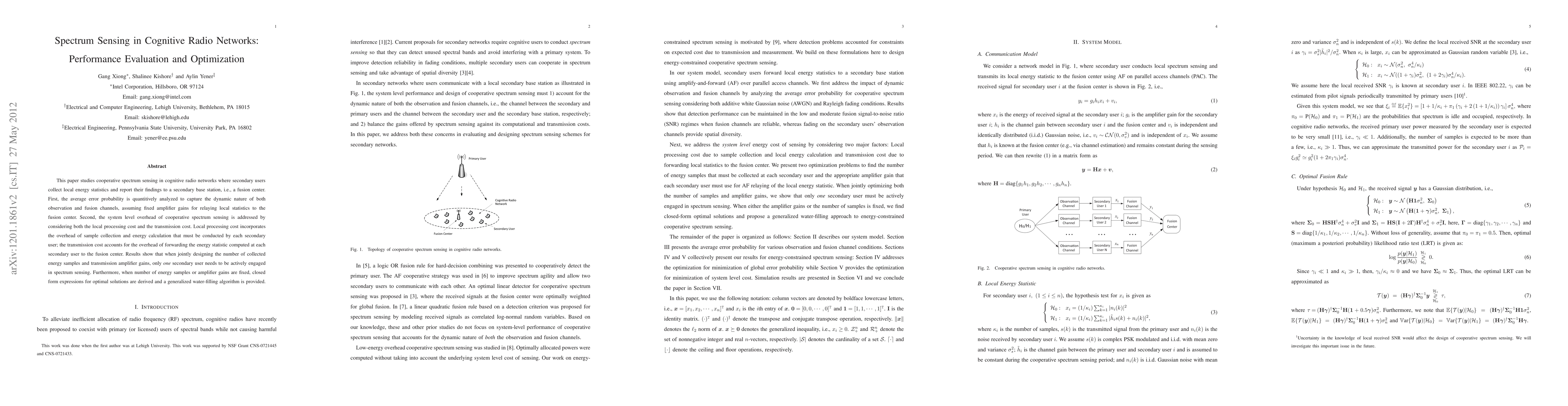 This paper studies cooperative spectrum sensing in cognitive radio networks where secondary users collect local energy statistics and report their findings to a secondary base station, i.e., a fusion center. First, the average error probability is quantitively analyzed to capture the dynamic nature of both observation and fusion channels, assuming fixed amplifier gains for relaying local statistics to the fusion center. Second, the system level overhead of cooperative spectrum sensing is addressed by considering both the local processing cost and the transmission cost. Local processing cost incorporates the overhead of sample collection and energy calculation that must be conducted by each secondary user; the transmission cost accounts for the overhead of forwarding the energy statistic computed at each secondary user to the fusion center. Results show that when jointly designing the number of collected energy samples and transmission amplifier gains, only one secondary user needs to be actively engaged in spectrum sensing. Furthermore, when number of energy samples or amplifier gains are fixed, closed form expressions for optimal solutions are derived and a generalized water-filling algorithm is provided.