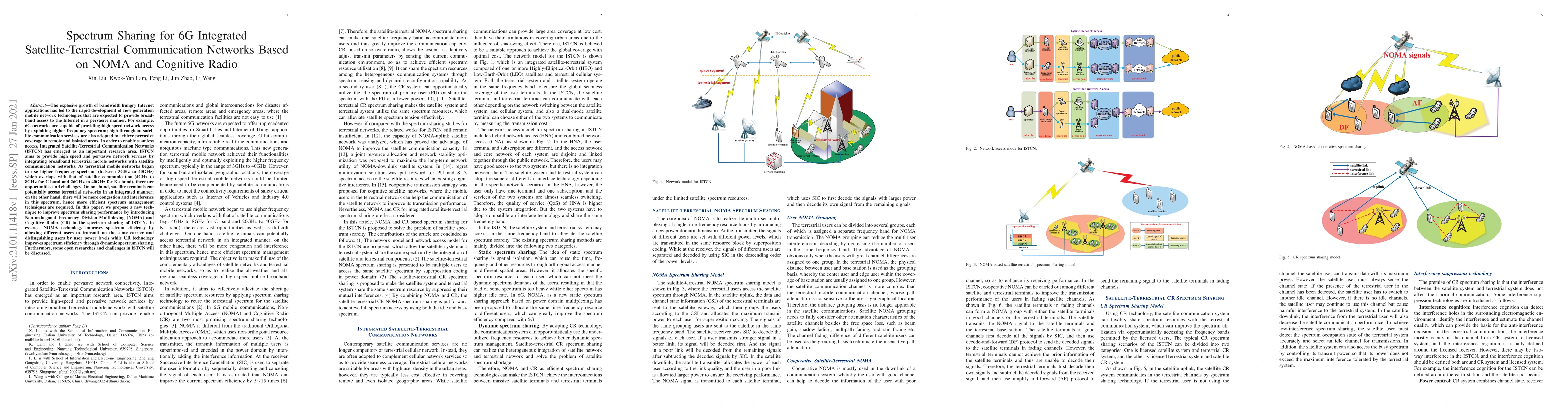 This paper proposes a spectrum sharing technique for 6G Integrated Satellite-Terrestrial Communication Networks (ISTCN) using Non-orthogonal Frequency Division Multiplexing (NOMA) and Cognitive Radio (CR) to enhance spectrum efficiency and manage interference. It discusses challenges and opportunities in integrating satellite and terrestrial networks.