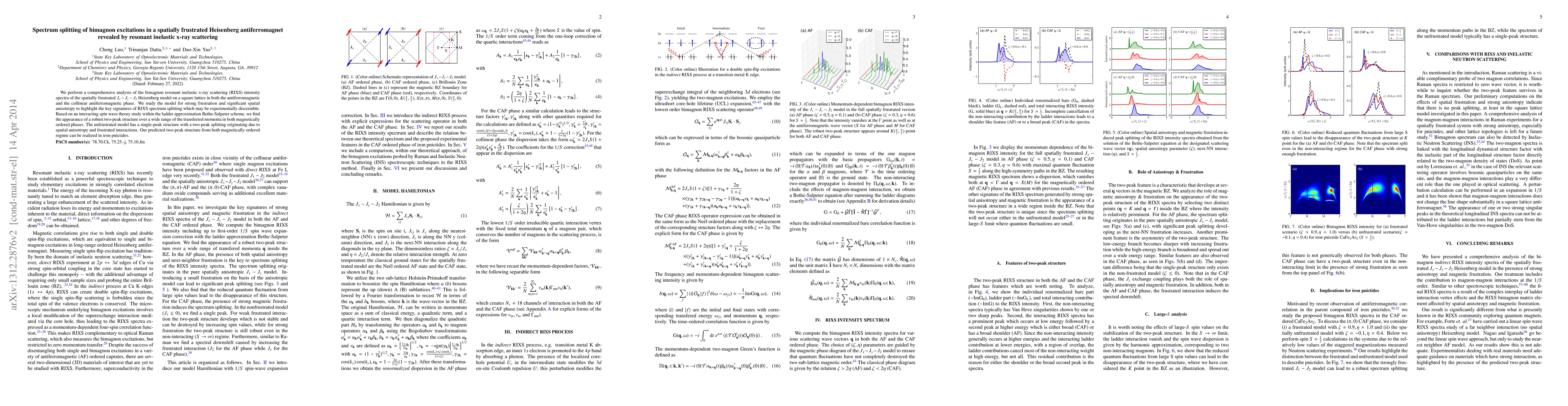 We perform a comprehensive analysis of the bimagnon resonant inelastic x-ray scattering (RIXS) intensity spectra of the spatially frustrated Jx-Jy-J2 Heisenberg model on a square lattice in both the antiferromagnetic and the collinear antiferromagnetic phase. We study the model for strong frustration and significant spatial anisotropy to highlight the key signatures of RIXS spectrum splitting which may be experimentally discernible. Based on an interacting spin wave theory study within the ladder approximation Bethe-Salpeter scheme, we find the appearance of a robust two-peak structure over a wide range of the transferred momenta in both magnetically ordered phases. The unfrustrated model has a single-peak structure with a two-peak splitting originating due to spatial anisotropy and frustrated interactions. Our predicted two-peak structure from both magnetically ordered regime can be realized in iron pnictides.