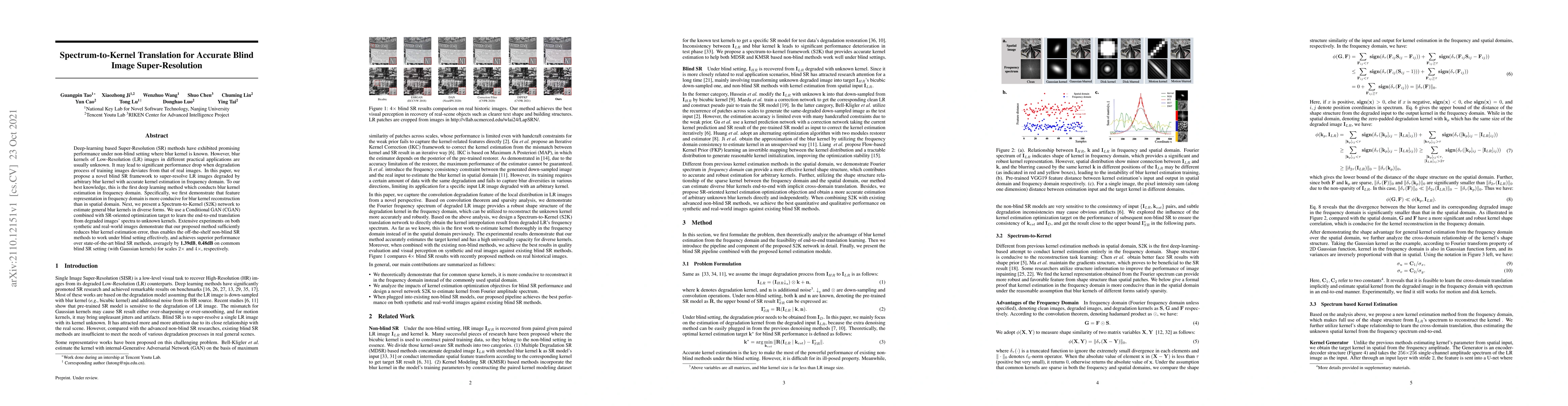This paper introduces a novel blind Super-Resolution (SR) framework that estimates unknown blur kernels in the frequency domain using a Spectrum-to-Kernel (S$^2$K) network, significantly improving performance over state-of-the-art methods by reducing blur kernel estimation error.