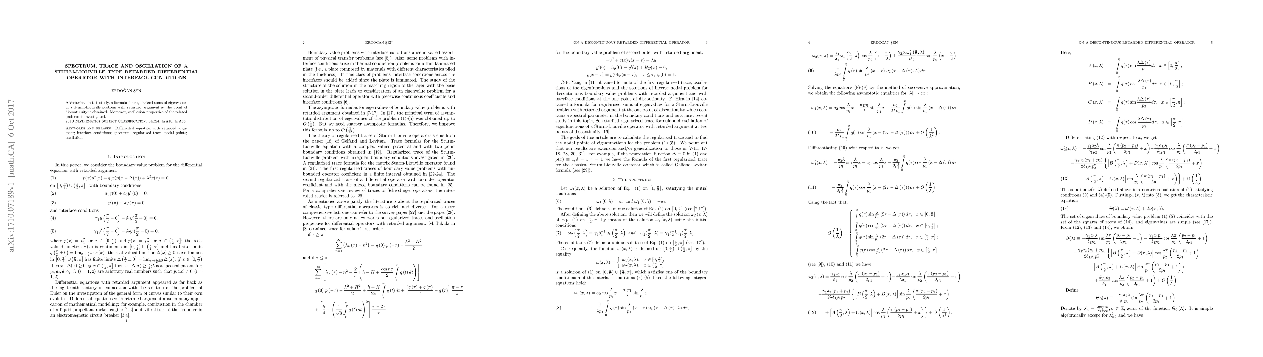 This paper derives a formula for the regularized sums of eigenvalues in a Sturm-Liouville problem featuring a retarded argument at a discontinuity point, and examines the oscillation properties of the associated differential operator.