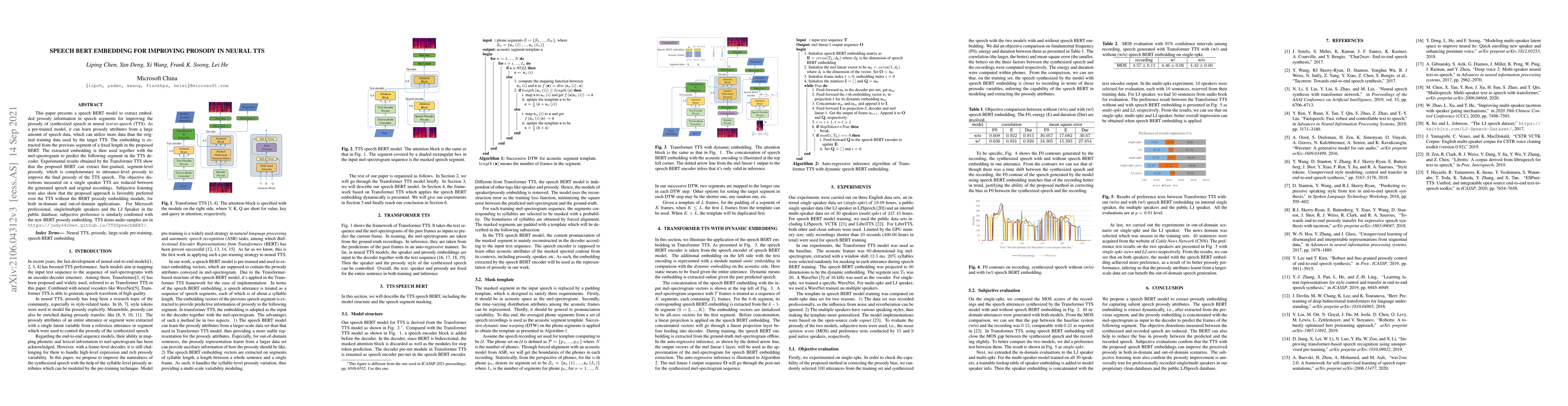 This paper introduces a speech BERT model to enhance prosody in neural TTS by extracting embedded prosody information from speech segments, leading to improved prosody in synthesized speech. The proposed model shows reduced objective distortions and favorable subjective listening test results compared to conventional TTS systems.