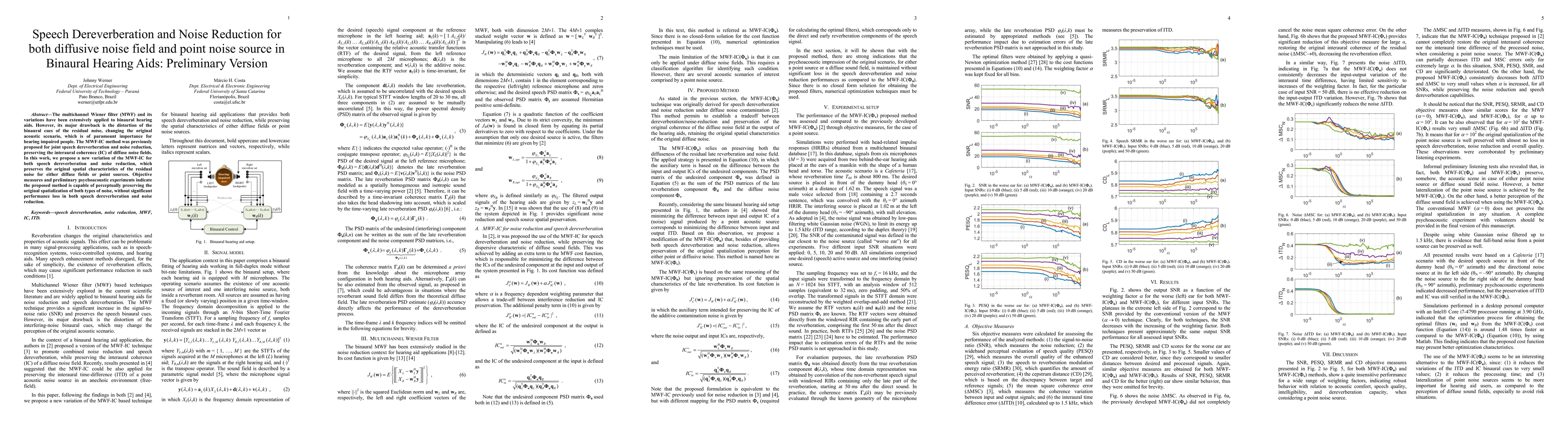 This paper proposes a new variation of the MWF-IC method for binaural hearing aids to enhance speech dereverberation and noise reduction while preserving the spatial characteristics of residual noise, both for diffuse fields and point sources. Preliminary results suggest the method maintains original spatialization without significant performance loss.
