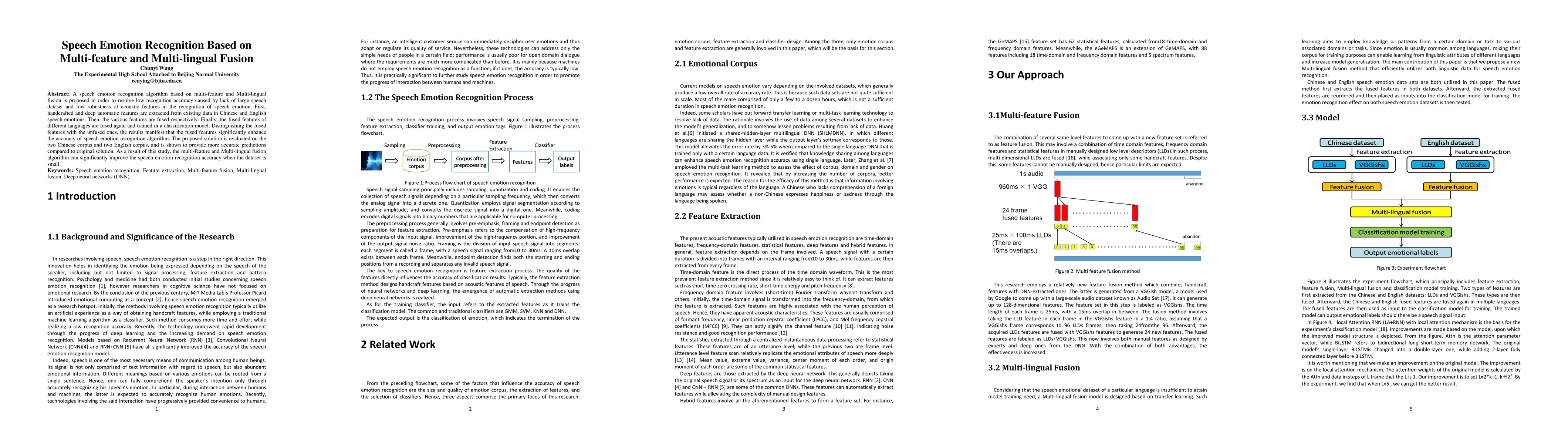 This paper proposes a speech emotion recognition algorithm that utilizes multi-feature and multi-lingual fusion to enhance recognition accuracy. The method integrates handcrafted and deep automatic features from Chinese and English datasets, fuses these features, and trains a classification model, achieving significantly improved accuracy over original methods.