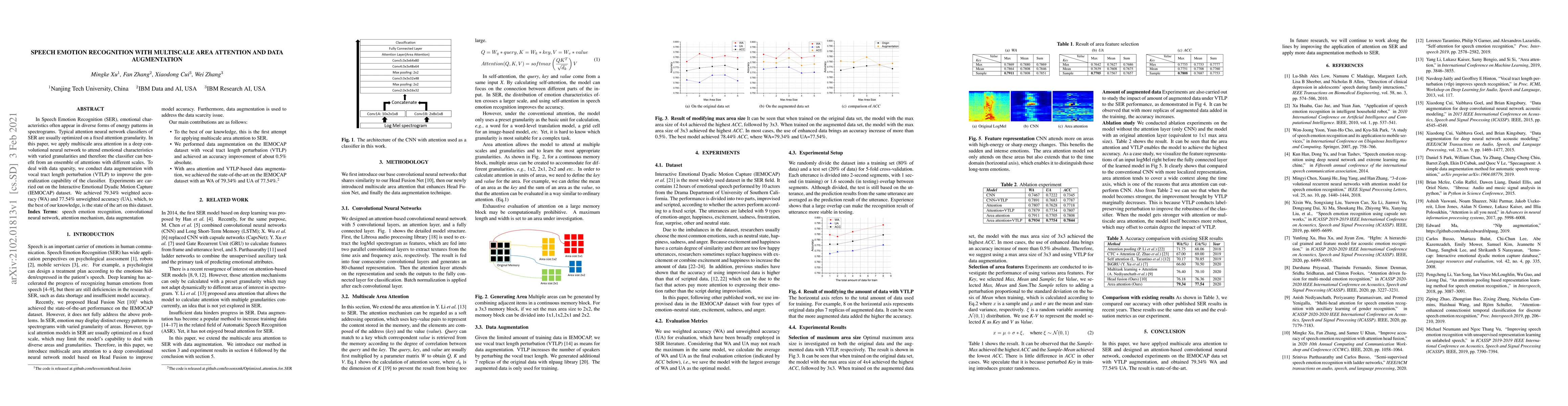 This paper proposes a multiscale area attention mechanism in a deep convolutional neural network to enhance Speech Emotion Recognition by capturing emotional characteristics at various granularities. To address data sparsity, vocal tract length perturbation data augmentation is employed, achieving state-of-the-art results with 79.34% weighted accuracy and 77.54% unweighted accuracy on the IEMOCAP dataset.