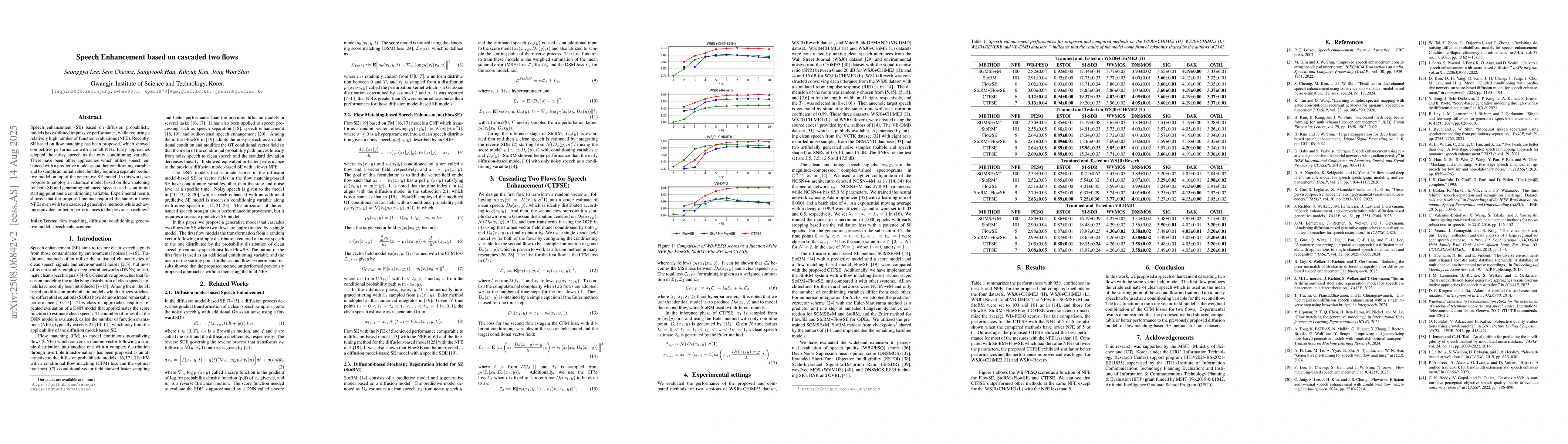 Speech enhancement (SE) based on diffusion probabilistic models has exhibited impressive performance, while requiring a relatively high number of function evaluations (NFE). Recently, SE based on flow matching has been proposed, which showed competitive performance with a small NFE. Early approaches adopted the noisy speech as the only conditioning variable. There have been other approaches which utilize speech enhanced with a predictive model as another conditioning variable and to sample an initial value, but they require a separate predictive model on top of the generative SE model. In this work, we propose to employ an identical model based on flow matching for both SE and generating enhanced speech used as an initial starting point and a conditioning variable. Experimental results showed that the proposed method required the same or fewer NFEs even with two cascaded generative methods while achieving equivalent or better performances to the previous baselines.