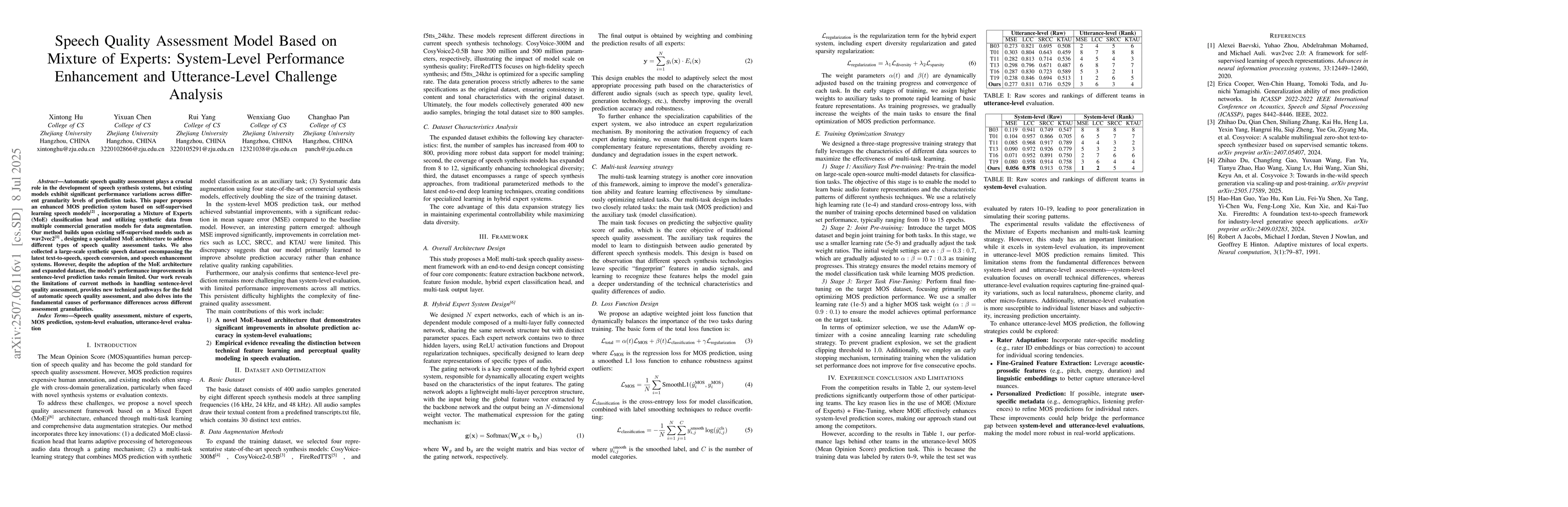 Automatic speech quality assessment plays a crucial role in the development of speech synthesis systems, but existing models exhibit significant performance variations across different granularity levels of prediction tasks. This paper proposes an enhanced MOS prediction system based on self-supervised learning speech models, incorporating a Mixture of Experts (MoE) classification head and utilizing synthetic data from multiple commercial generation models for data augmentation. Our method builds upon existing self-supervised models such as wav2vec2, designing a specialized MoE architecture to address different types of speech quality assessment tasks. We also collected a large-scale synthetic speech dataset encompassing the latest text-to-speech, speech conversion, and speech enhancement systems. However, despite the adoption of the MoE architecture and expanded dataset, the model's performance improvements in sentence-level prediction tasks remain limited. Our work reveals the limitations of current methods in handling sentence-level quality assessment, provides new technical pathways for the field of automatic speech quality assessment, and also delves into the fundamental causes of performance differences across different assessment granularities.