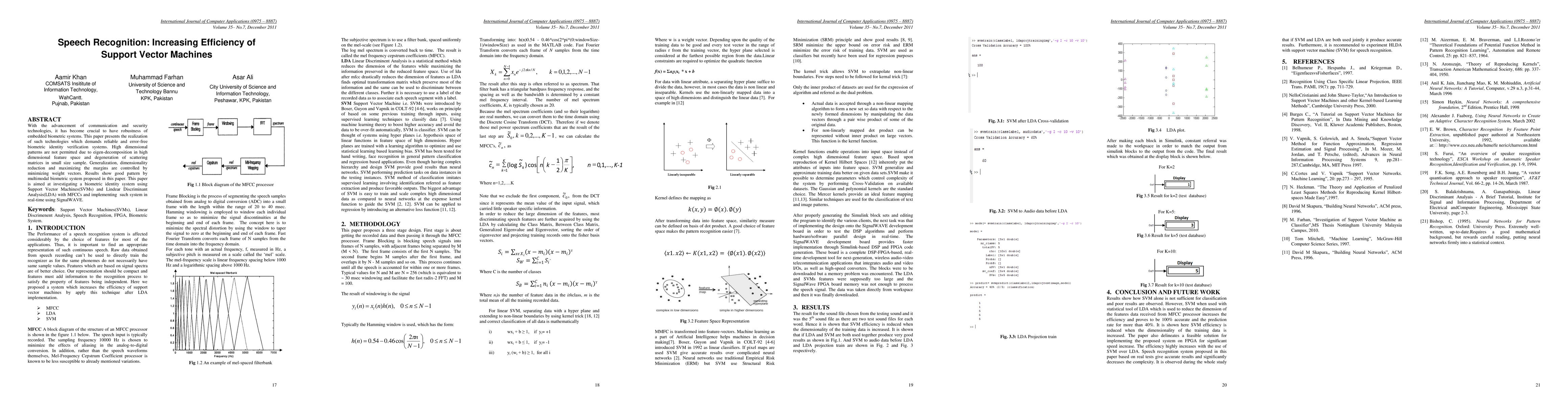 This paper proposes a robust biometric system using Support Vector Machines with Multimodal features (MFCCs) and LDA, achieving good performance in real-time applications.