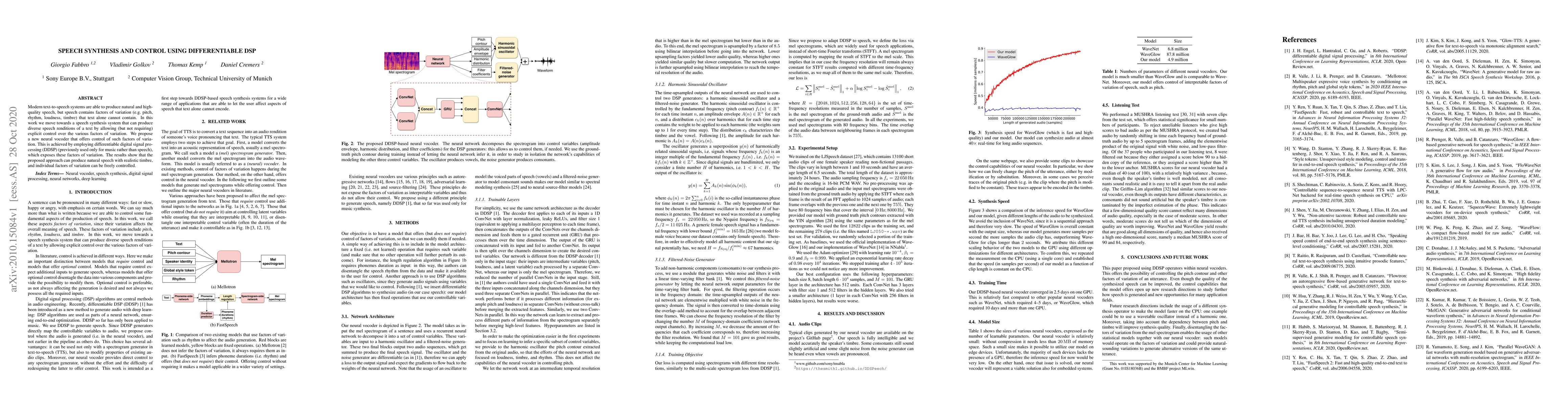 Modern text-to-speech systems are able to produce natural and high-quality speech, but speech contains factors of variation (e.g. pitch, rhythm, loudness, timbre)\ that text alone cannot contain. In this work we move towards a speech synthesis system that can produce diverse speech renditions of a text by allowing (but not requiring) explicit control over the various factors of variation. We propose a new neural vocoder that offers control of such factors of variation. This is achieved by employing differentiable digital signal processing (DDSP) (previously used only for music rather than speech), which exposes these factors of variation. The results show that the proposed approach can produce natural speech with realistic timbre, and individual factors of variation can be freely controlled.