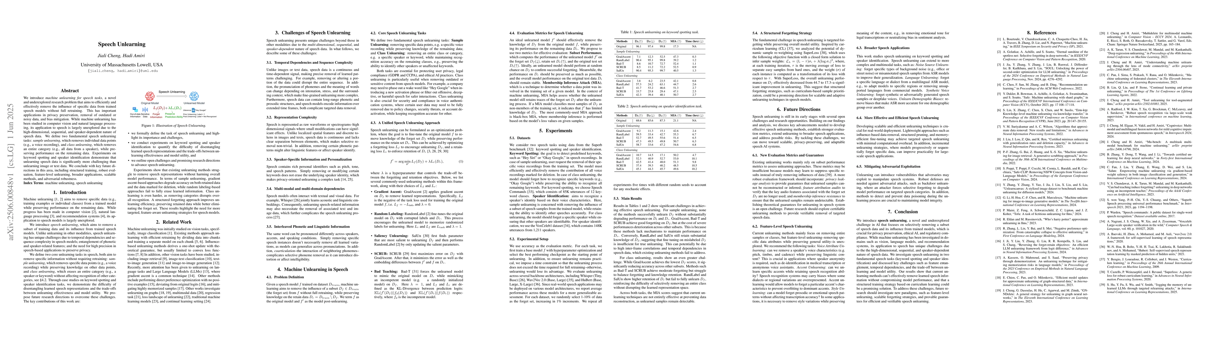 Researchers introduce a new method to remove specific data from trained speech models without retraining, with potential applications in privacy preservation and bias mitigation, while facing challenges due to the sequential nature of speech data.