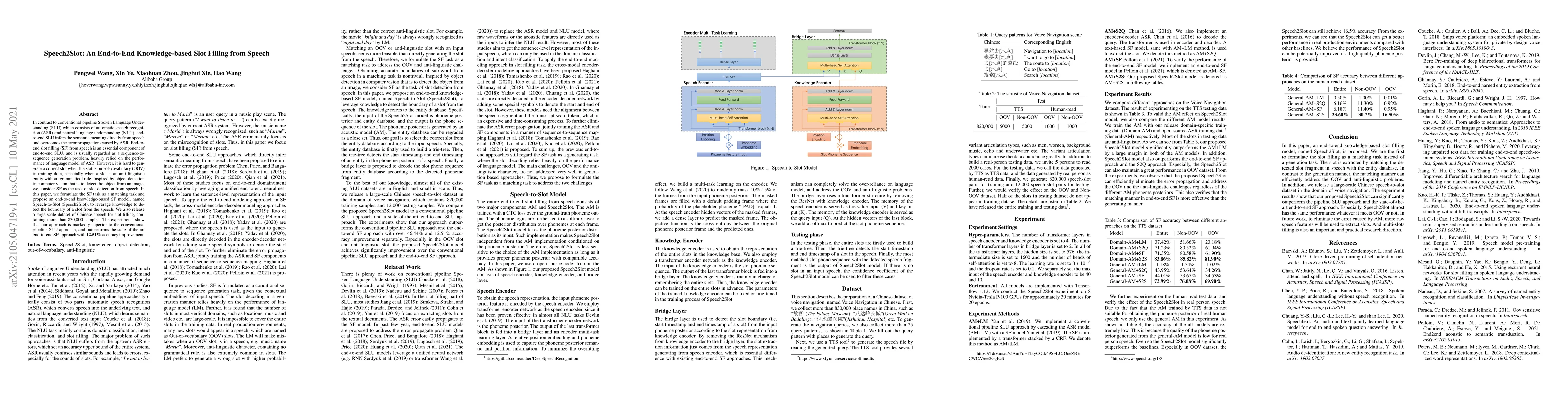 This paper proposes Speech2Slot, an end-to-end knowledge-based slot filling model that directly infers semantic meaning from speech, overcoming errors from traditional ASR and NLU pipelines. It demonstrates significant accuracy improvements over existing methods, especially for out-of-vocabulary slots.