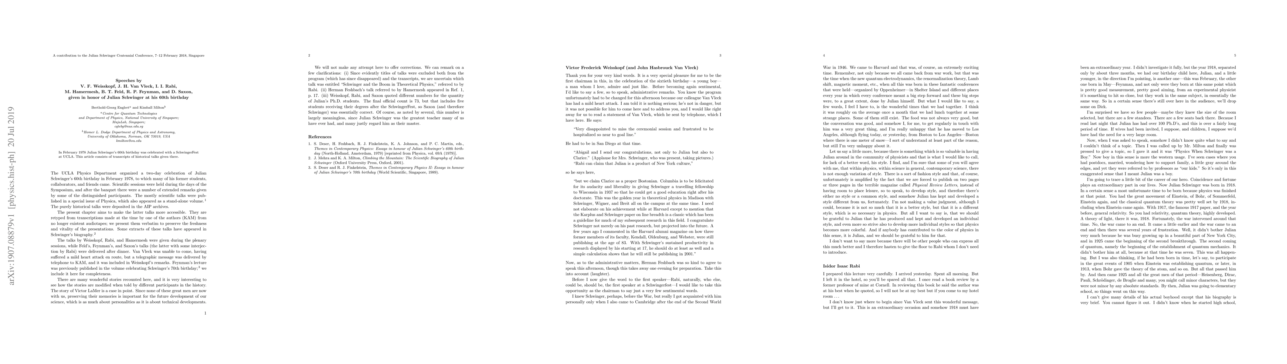In February 1978 Julian Schwinger's 60th birthday was celebrated with a SchwingerFest at UCLA. This article consists of transcripts of historical talks given there.