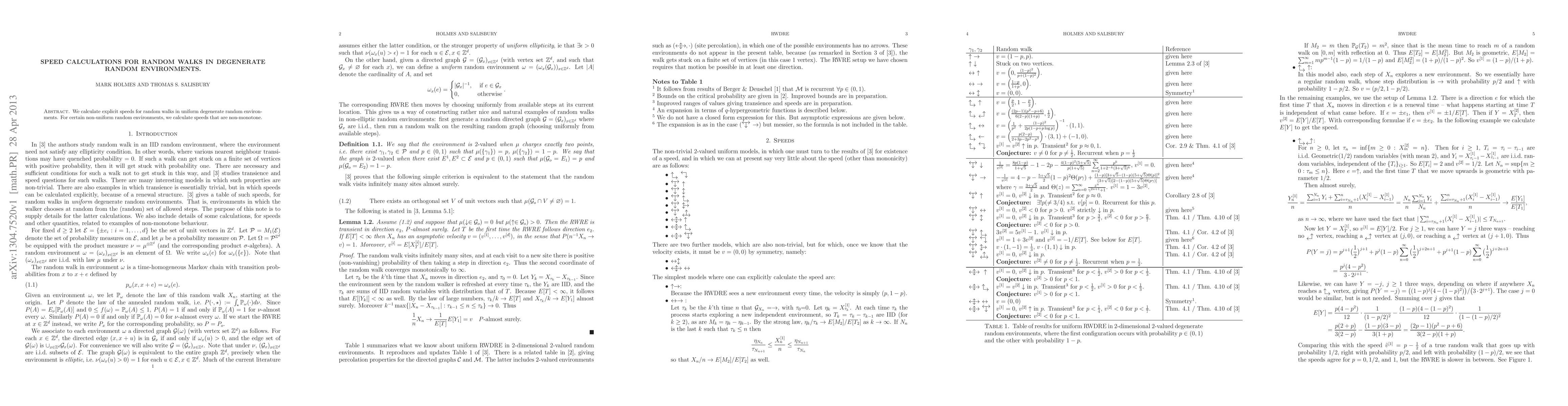 Summary: This paper provides explicit speed calculations for random walks in uniformly degenerate random environments, and also explores non-uniform environments where the calculated speeds exhibit non-monotonic behavior.