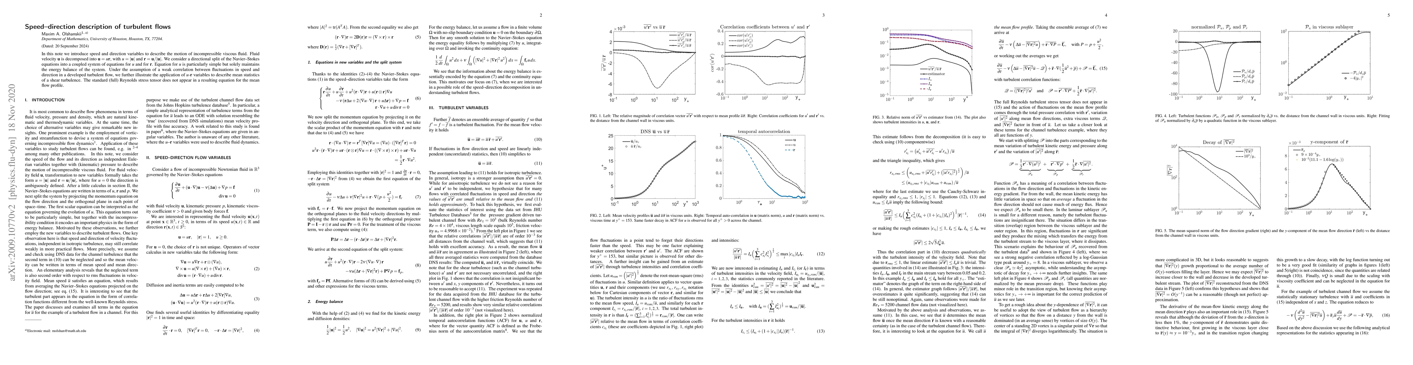 In this note we introduce speed and direction variables to describe the motion of incompressible viscous flows. Fluid velocity ${\bf u}$ is decomposed into ${\bf u}=u{\bf r}$, with $u=|{\bf u}|$ and ${\bf r}={\bf u}/|{\bf u}|$. We consider a directional split of the Navier-Stokes equations into a coupled system of equations for $u$ and for ${\bf r}$. Equation for $u$ is particularly simple but solely maintains the energy balance of the system. Under the assumption of a weak correlation between fluctuations in speed and direction in a developed turbulent flow, we further illustrate the application of $u$-${\bf r}$ variables to describe mean statistics of a shear turbulence. The standard (full) Reynolds stress tensor does not appear in a resulting equation for the mean flow profile.