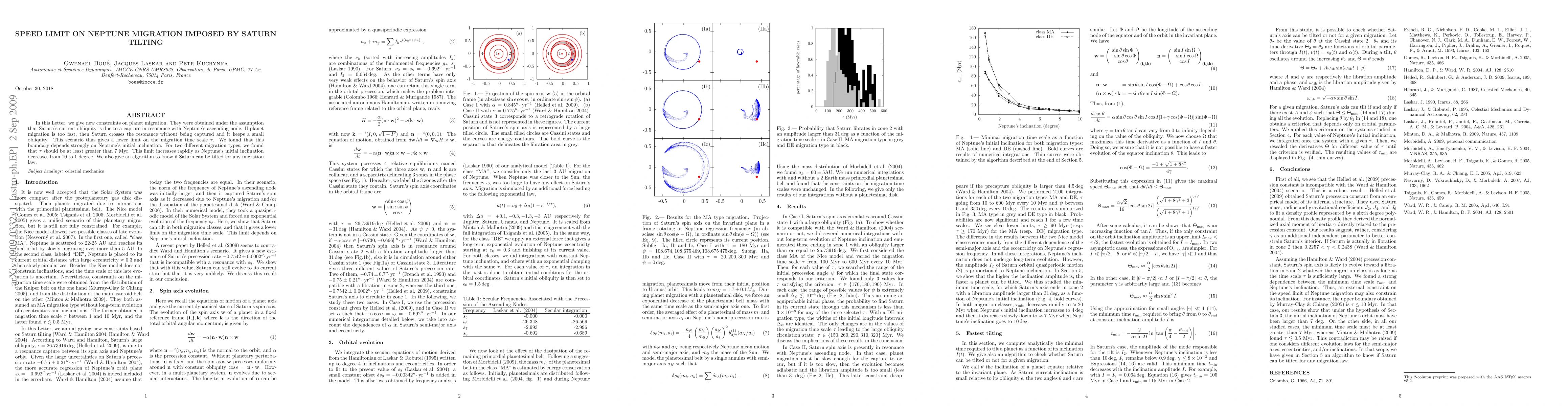 This research establishes a lower limit on Neptune's migration speed based on Saturn's current obliquity, suggesting that migration must occur over at least 7 million years. The study finds that this limit increases significantly as Neptune's initial inclination decreases.