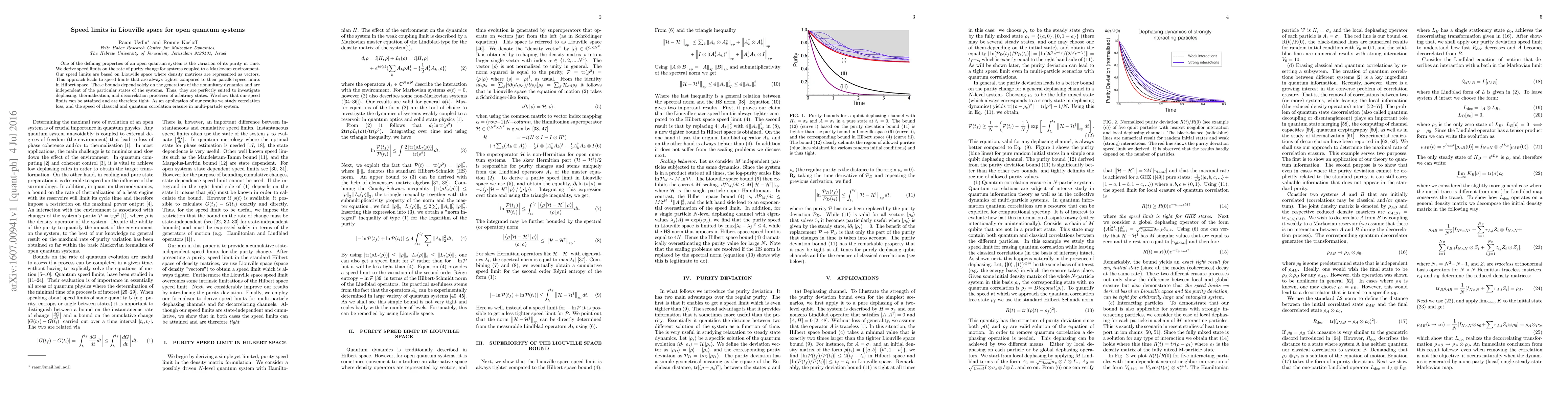 One of the defining properties of an open quantum system is the variation of its purity in time. We derive speed limits on the rate of purity change for systems coupled to a Markovian environment. Our speed limits are based on Liouville space where density matrices are represented as vectors. This approach leads to speed limits that are always tighter compared to their parallel speed limits in Hilbert space. These bounds depend solely on the generators of the nonunitary dynamics and are independent of the particular states of the systems. Thus, they are perfectly suited to investigate dephasing, thermalization, and decorrelation processes of arbitrary states. We show that our speed limits can be attained and are therefore tight. As an application of our results we study correlation loss, and the speed of classical and quantum correlation erasure in multi-particle system.