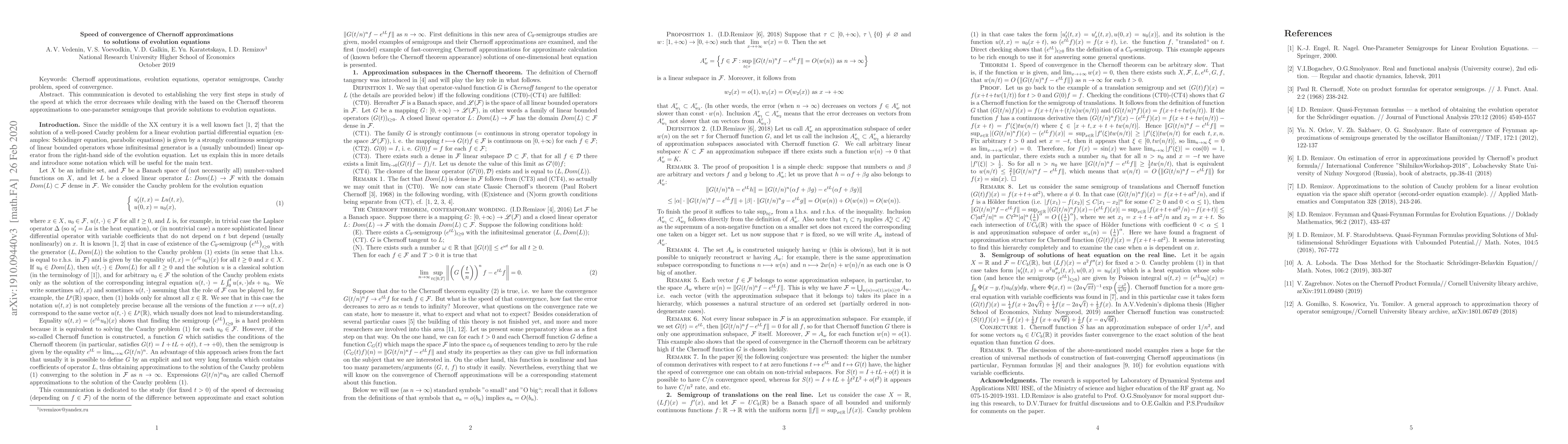 This communication is devoted to establishing the very first steps in study of the speed at which the error decreases while dealing with the based on the Chernoff theorem approximations to one-parameter semigroups that provide solutions to evolution equations.