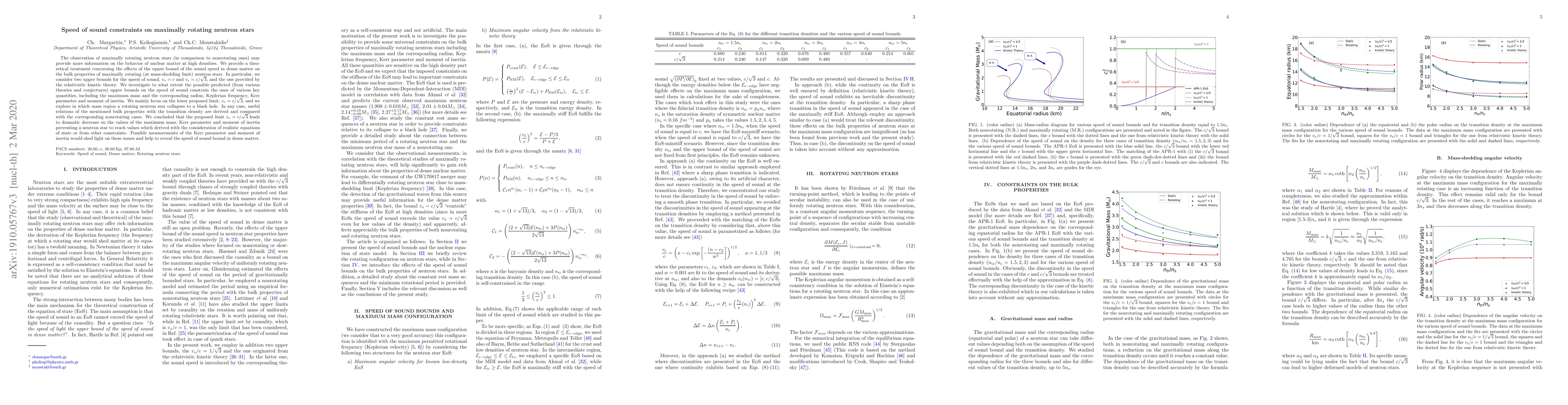 This paper investigates the impact of upper bounds on the speed of sound in dense nuclear matter on the properties of maximally rotating neutron stars, particularly focusing on the limit $v_s = c/\sqrt{3}$. It finds that this limit significantly reduces the maximum mass, Kerr parameter, and moment of inertia, potentially preventing neutron stars from reaching values predicted by more realistic equations of state.
