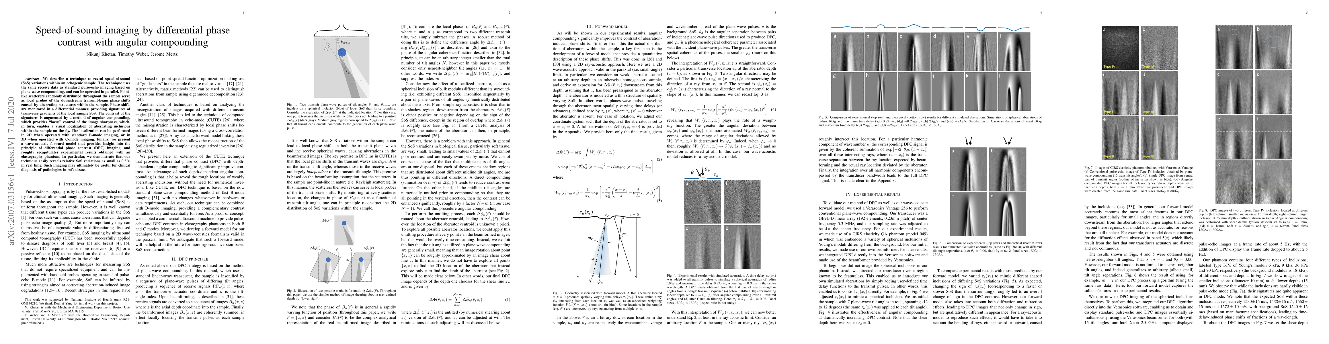 This paper introduces a novel speed-of-sound imaging technique using differential phase contrast with angular compounding, which reveals SoS variations within echogenic samples by monitoring phase shifts from point-like scatterers. The method enhances image sharpness and localization of aberrating inclusions in real time, potentially aiding clinical diagnosis of soft tissue pathologies.