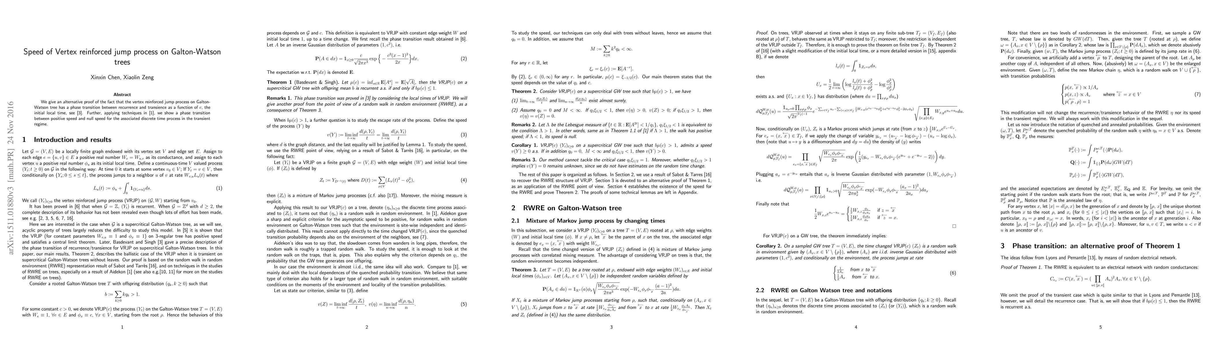 This paper provides an alternative proof of the phase transition in the vertex reinforced jump process on Galton-Watson trees between recurrence and transience based on initial local time c. It also demonstrates a phase transition between positive and null speed in the associated discrete time process during the transient regime using techniques from another study.