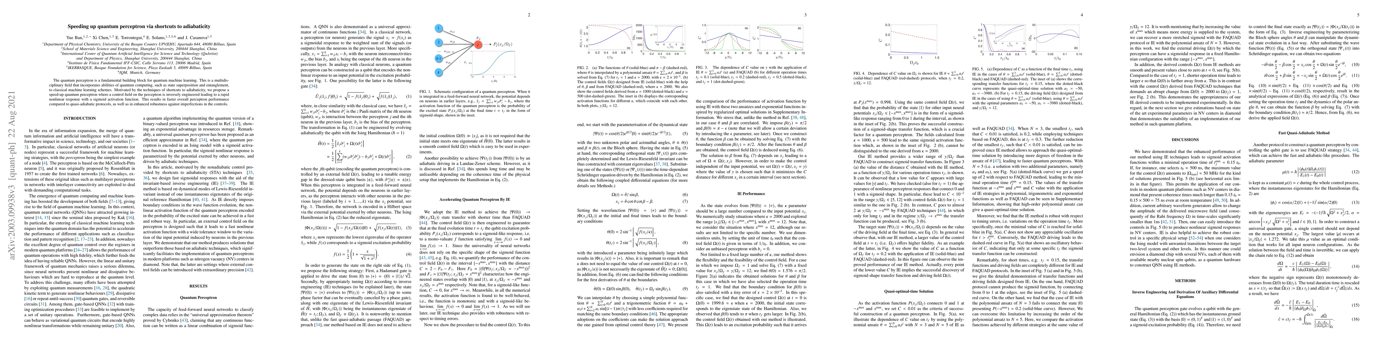 This paper proposes a speed-up quantum perceptron using shortcuts to adiabaticity, where an inversely engineered control field leads to a rapid nonlinear response and faster performance compared to quasi-adiabatic methods, while also improving robustness against control imperfections.