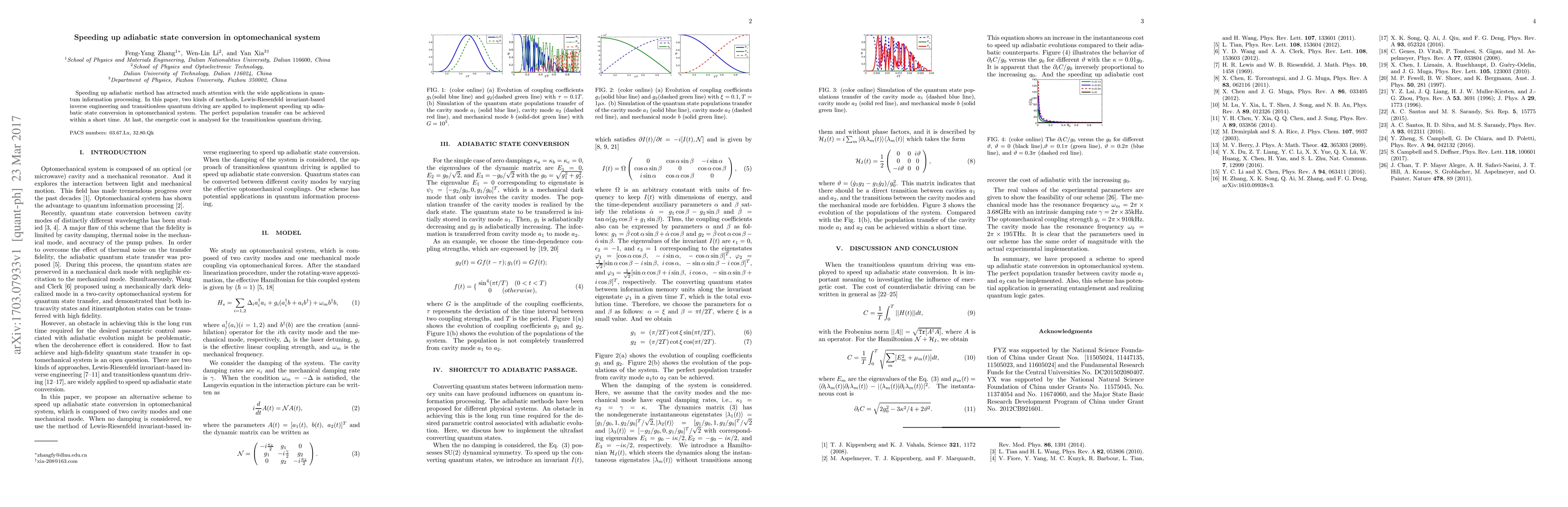 This paper explores speeding up adiabatic state conversion in optomechanical systems using Lewis-Riesenfeld invariant-based inverse engineering and transitionless quantum driving methods, achieving perfect population transfer in a short time, with an analysis of the energetic cost for the latter approach.