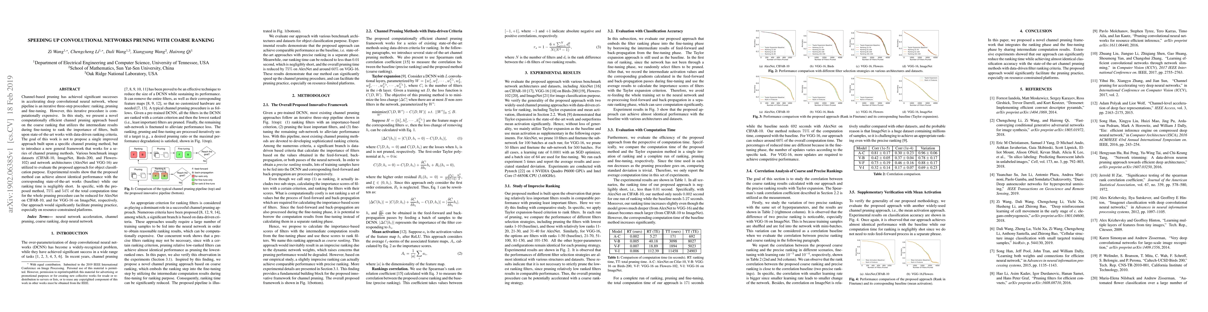 This paper proposes a computationally efficient channel pruning method based on coarse ranking to speed up the iterative ranking, pruning, and fine-tuning process in convolutional networks. The method achieves comparable performance to state-of-the-art approaches while significantly reducing computation time, facilitating practical use on resource-constrained platforms.
