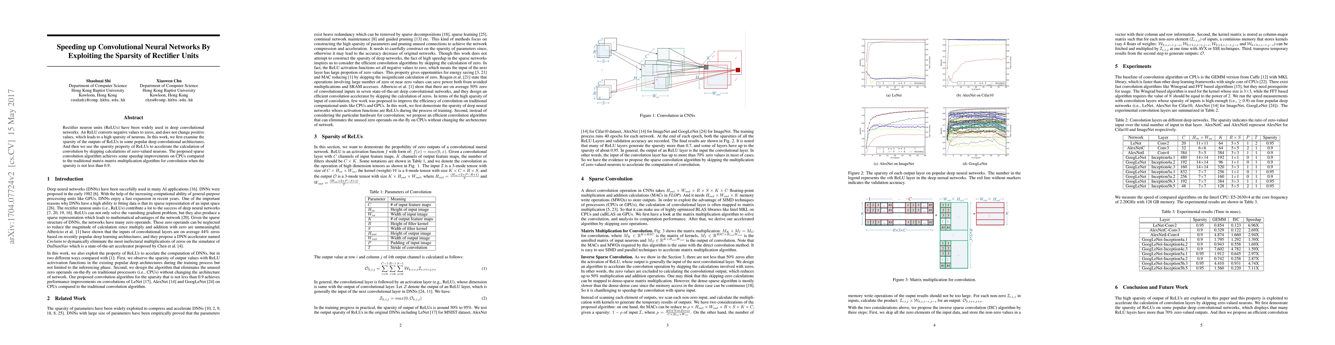 A new algorithm accelerates convolutional neural networks by leveraging the sparsity of rectifier units, achieving speedup improvements on CPUs when sparsity is high.