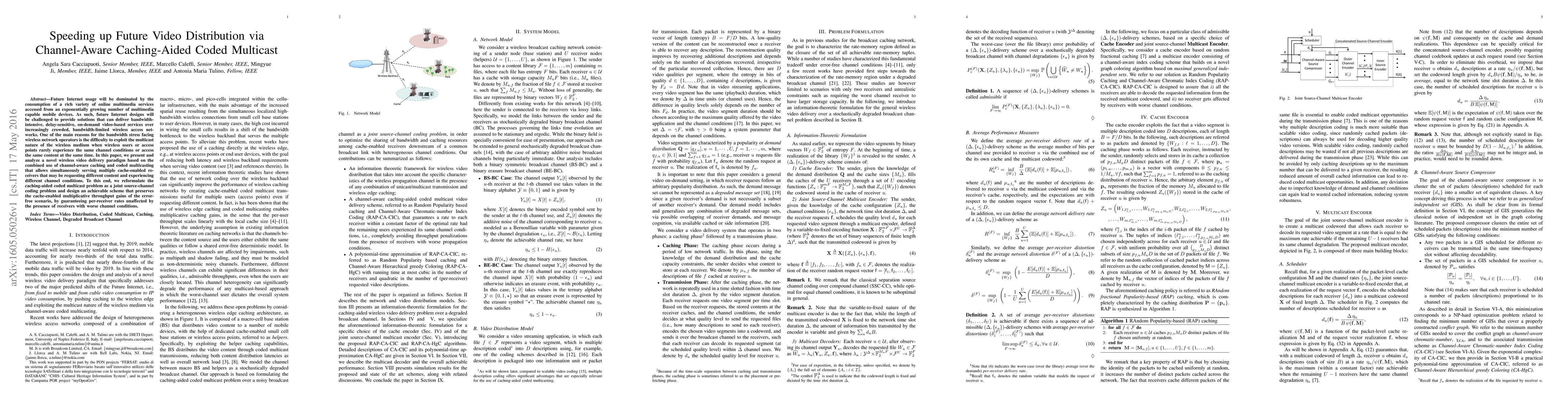 Future Internet usage will be dominated by the consumption of a rich variety of online multimedia services accessed from an exponentially growing number of multimedia capable mobile devices. As such, future Internet designs will be challenged to provide solutions that can deliver bandwidth-intensive, delay-sensitive, on-demand video-based services over increasingly crowded, bandwidth-limited wireless access networks. One of the main reasons for the bandwidth stress facing wireless network operators is the difficulty to exploit the multicast nature of the wireless medium when wireless users or access points rarely experience the same channel conditions or access the same content at the same time. In this paper, we present and analyze a novel wireless video delivery paradigm based on the combined use of channel-aware caching and coded multicasting that allows simultaneously serving multiple cache-enabled receivers that may be requesting different content and experiencing different channel conditions. To this end, we reformulate the caching-aided coded multicast problem as a joint source-channel coding problem and design an achievable scheme that preserves the cache-enabled multiplicative throughput gains of the error-free scenario,by guaranteeing per-receiver rates unaffected by the presence of receivers with worse channel conditions.