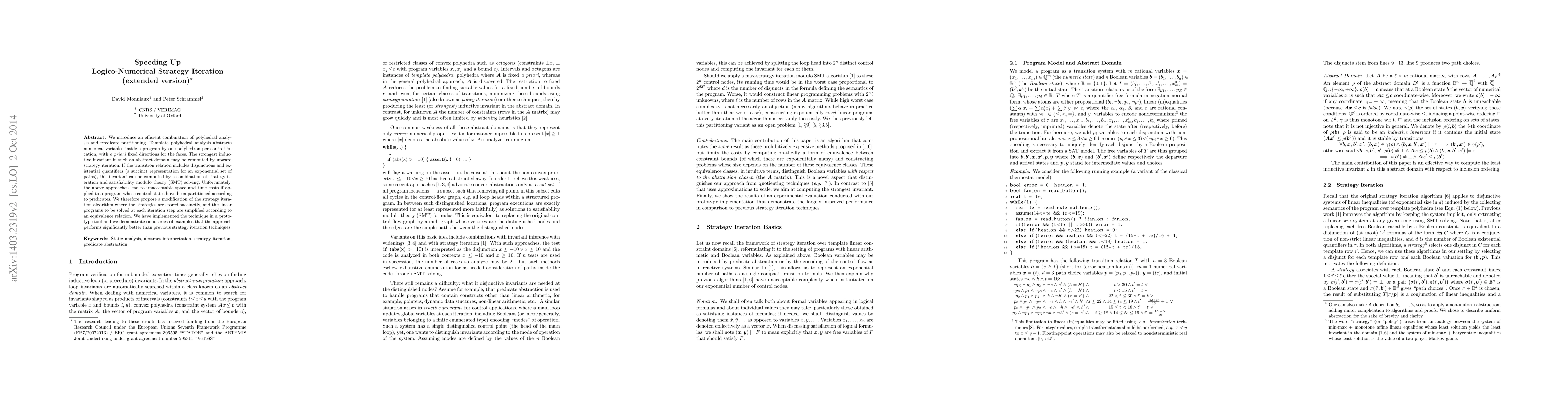 This paper proposes an optimized strategy iteration algorithm combining polyhedral analysis and predicate partitioning to efficiently compute the strongest inductive invariant in programs with complex transition relations. The modified algorithm significantly reduces space and time costs compared to traditional methods, as demonstrated through a prototype tool and a series of examples.