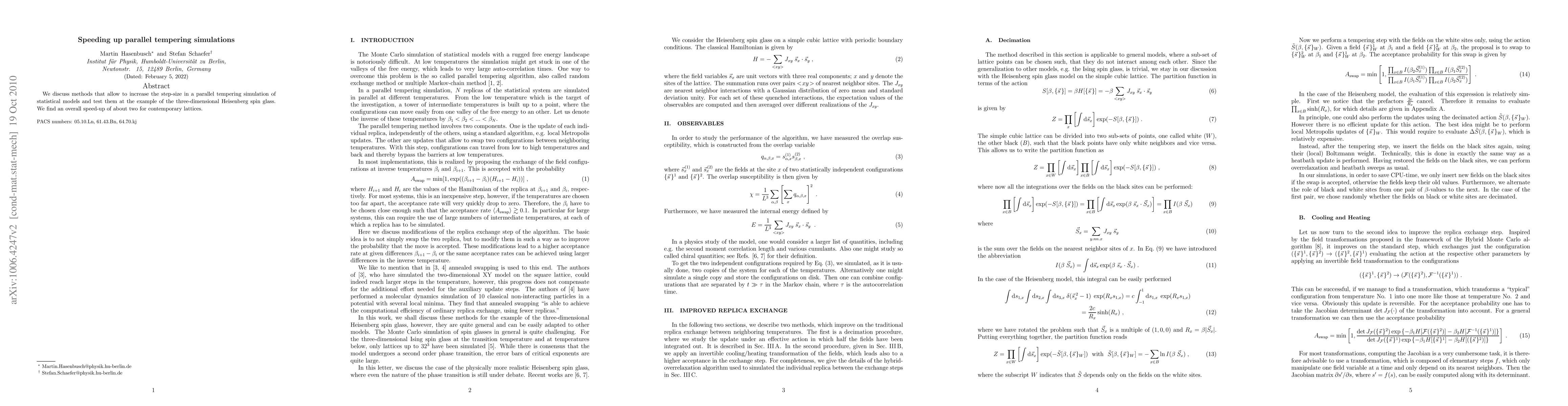 Researchers found a way to speed up parallel tempering simulations, increasing step-size efficiency by about two for three-dimensional Heisenberg spin glass models.