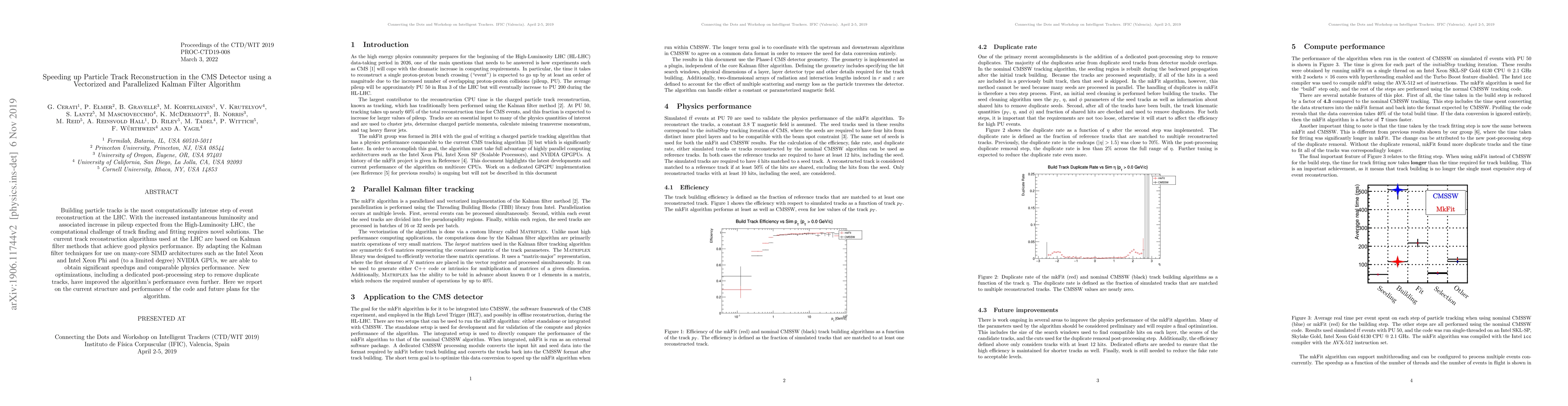 Building particle tracks is the most computationally intense step of event reconstruction at the LHC. With the increased instantaneous luminosity and associated increase in pileup expected from the High-Luminosity LHC, the computational challenge of track finding and fitting requires novel solutions. The current track reconstruction algorithms used at the LHC are based on Kalman filter methods that achieve good physics performance. By adapting the Kalman filter techniques for use on many-core SIMD architectures such as the Intel Xeon and Intel Xeon Phi and (to a limited degree) NVIDIA GPUs, we are able to obtain significant speedups and comparable physics performance. New optimizations, including a dedicated post-processing step to remove duplicate tracks, have improved the algorithm's performance even further. Here we report on the current structure and performance of the code and future plans for the algorithm.